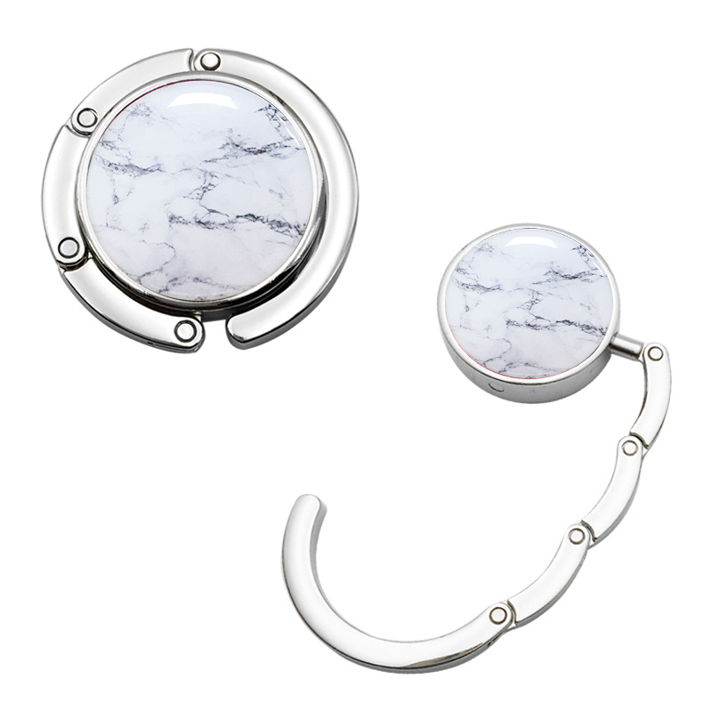 クリエイティブな丸型フック、金属製折りたたみ式ハンドバッグフック、テーブルサイドバッグフック、既製品、エポキシ樹脂大理石ライトニング、複数の画像