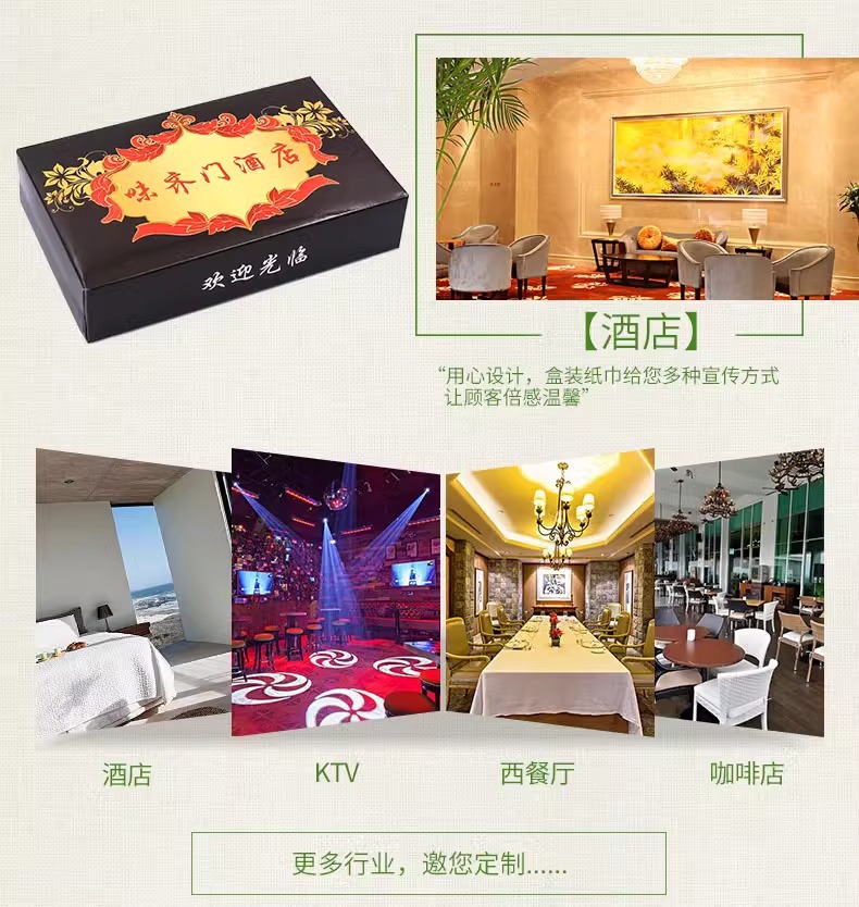 四角い箱のティッシュをカスタマイズして、ロゴホテルのレストランの商用箱を印刷して、広告を注文して、商用ナプキンを引き出します。