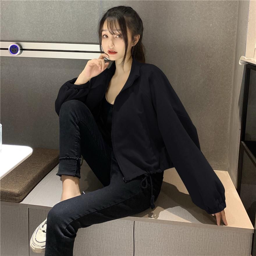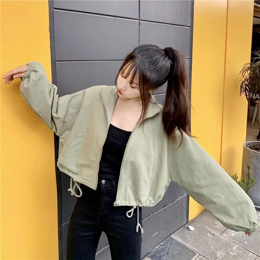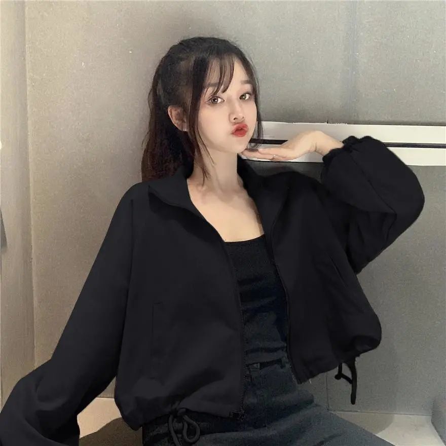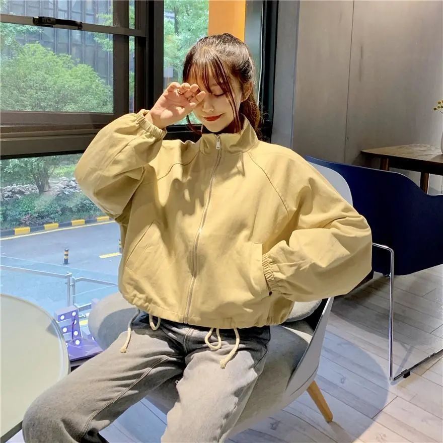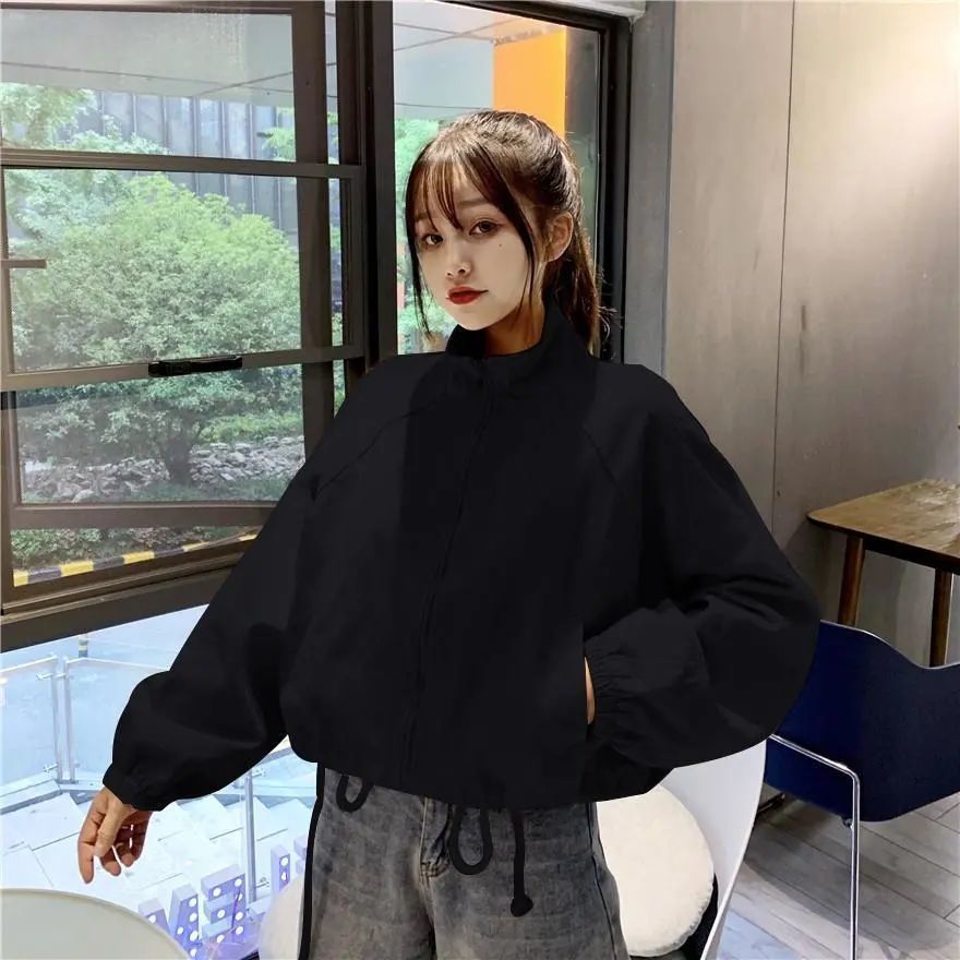 韩版学生百搭外套女新款宽松时尚短款休闲抽绳开衫上衣潮