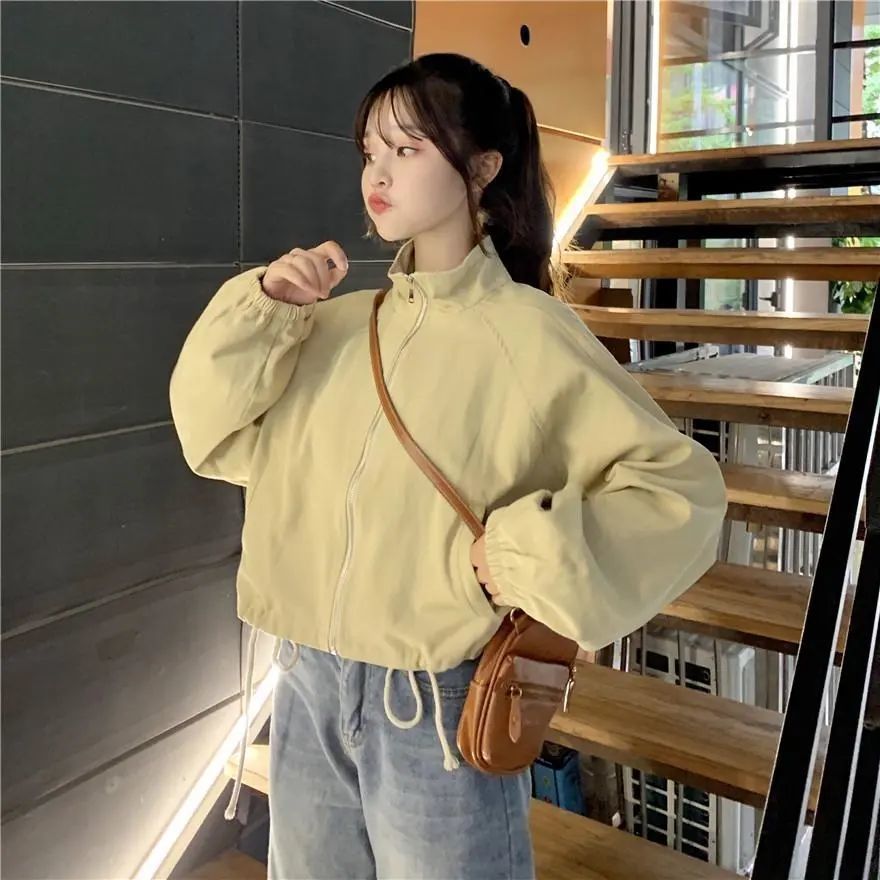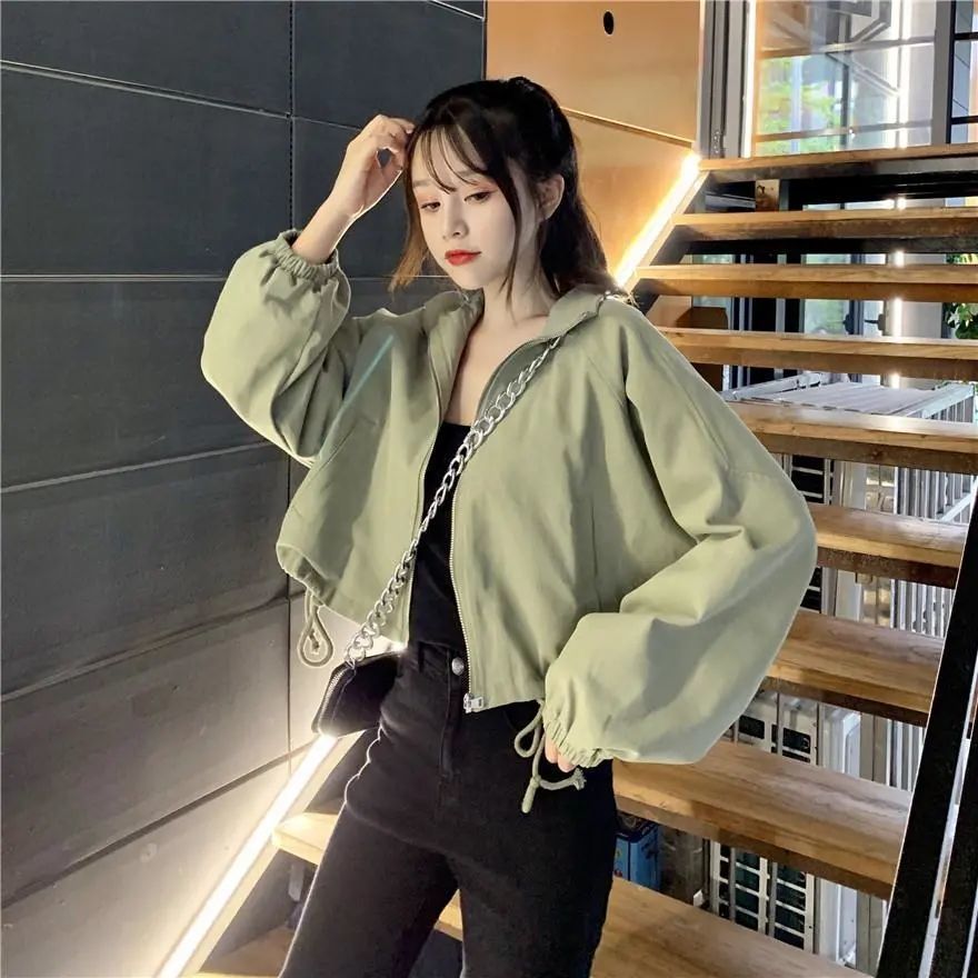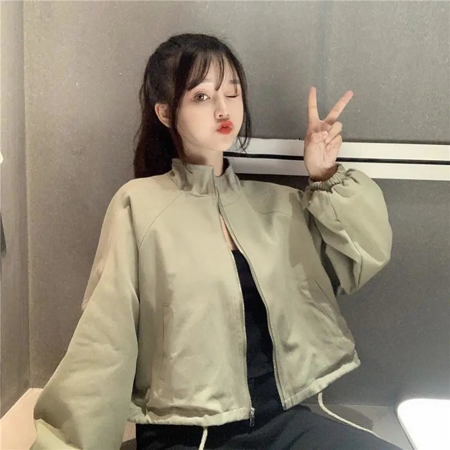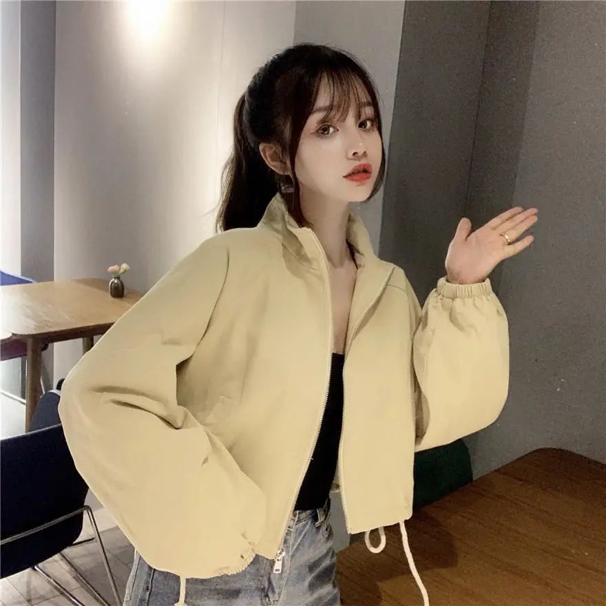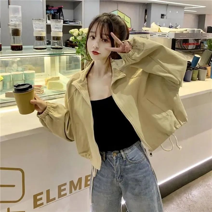 韩版学生百搭外套女新款宽松时尚短款休闲抽绳开衫上衣潮