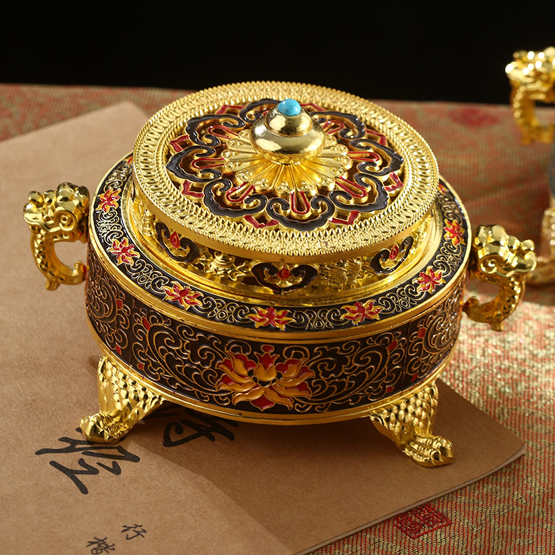 彩色絵レリーフ合金香炉景泰藍エナメル盤香沈香薫炉大サイズ仏堂家庭用インテリア置物