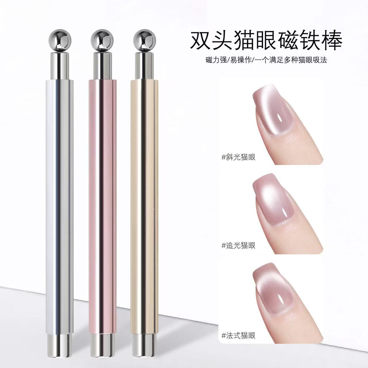 跨境美甲新品甲油胶猫眼磁铁棒双头大号磁铁笔多功能吸铁石磁铁球
