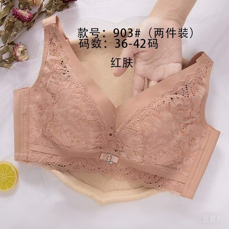 蕾丝无钢圈内衣舒适大杯抹胸防滑宽肩带大胸显小文胸罩防走光调整