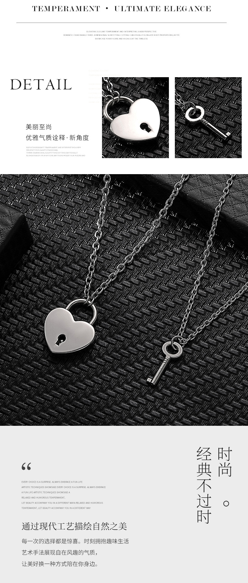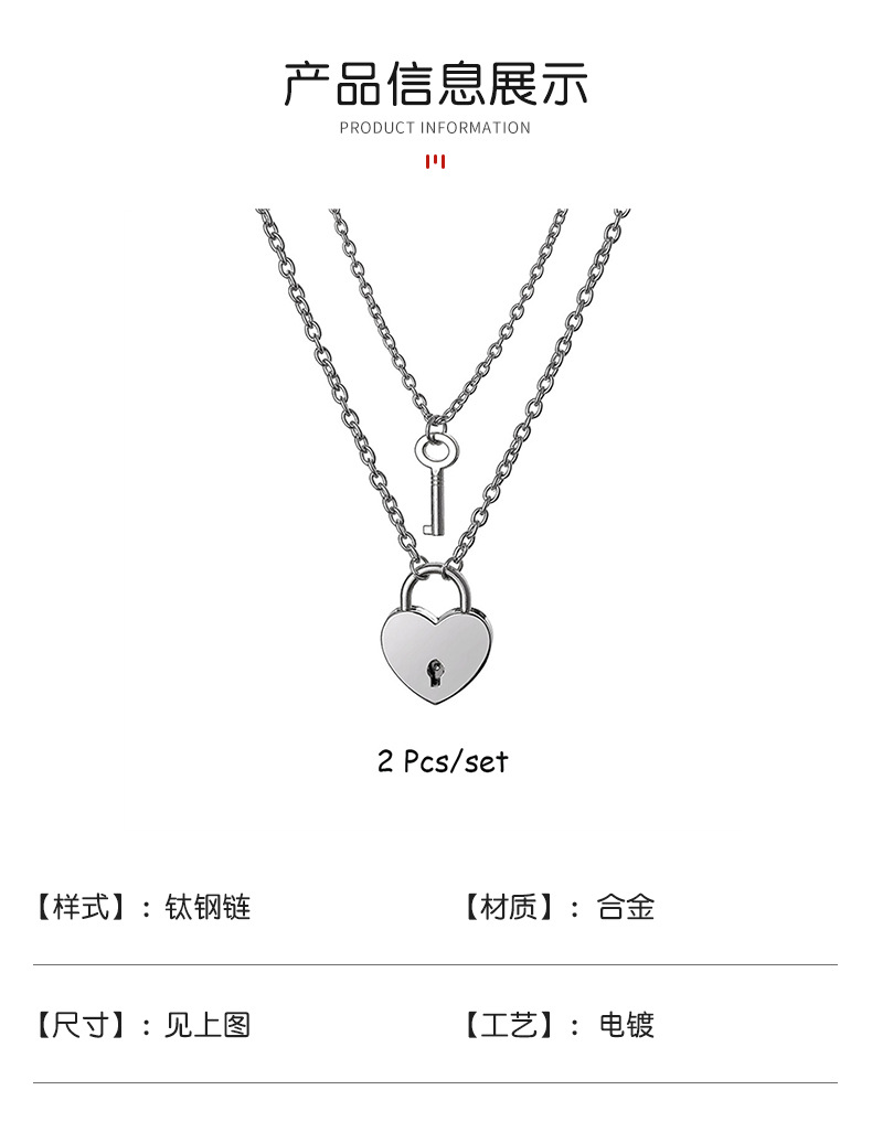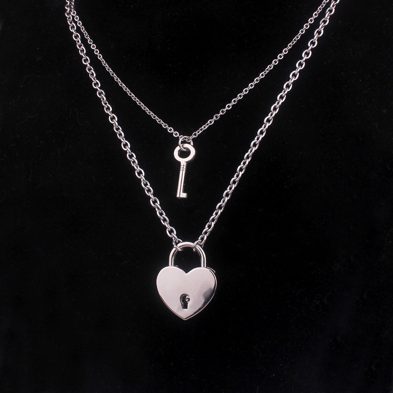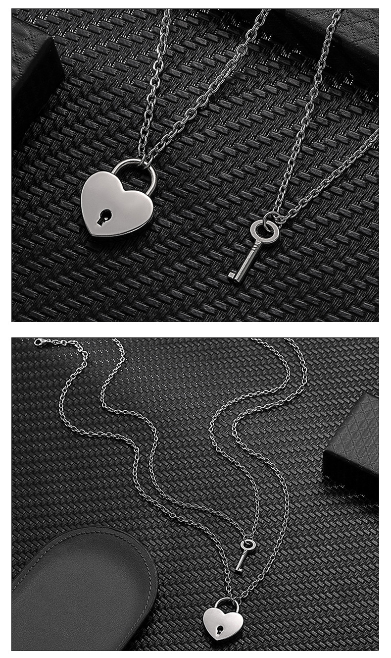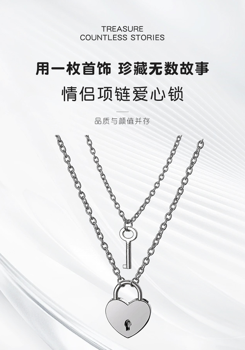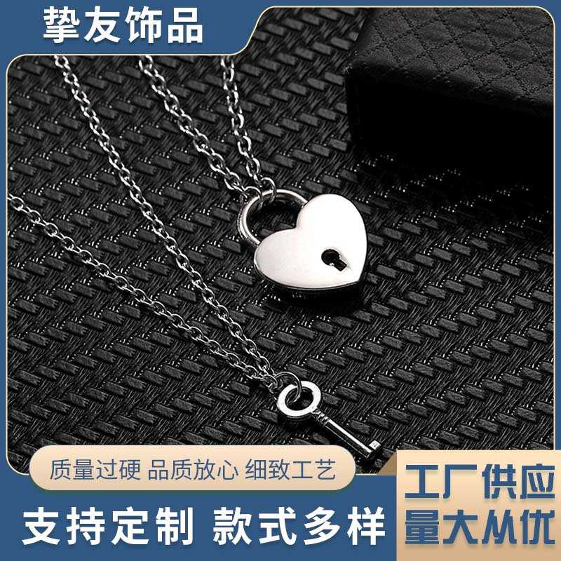 新款可开锁个性项链情侣锁和钥匙吊坠礼物不锈钢链子闺蜜挂锁项链