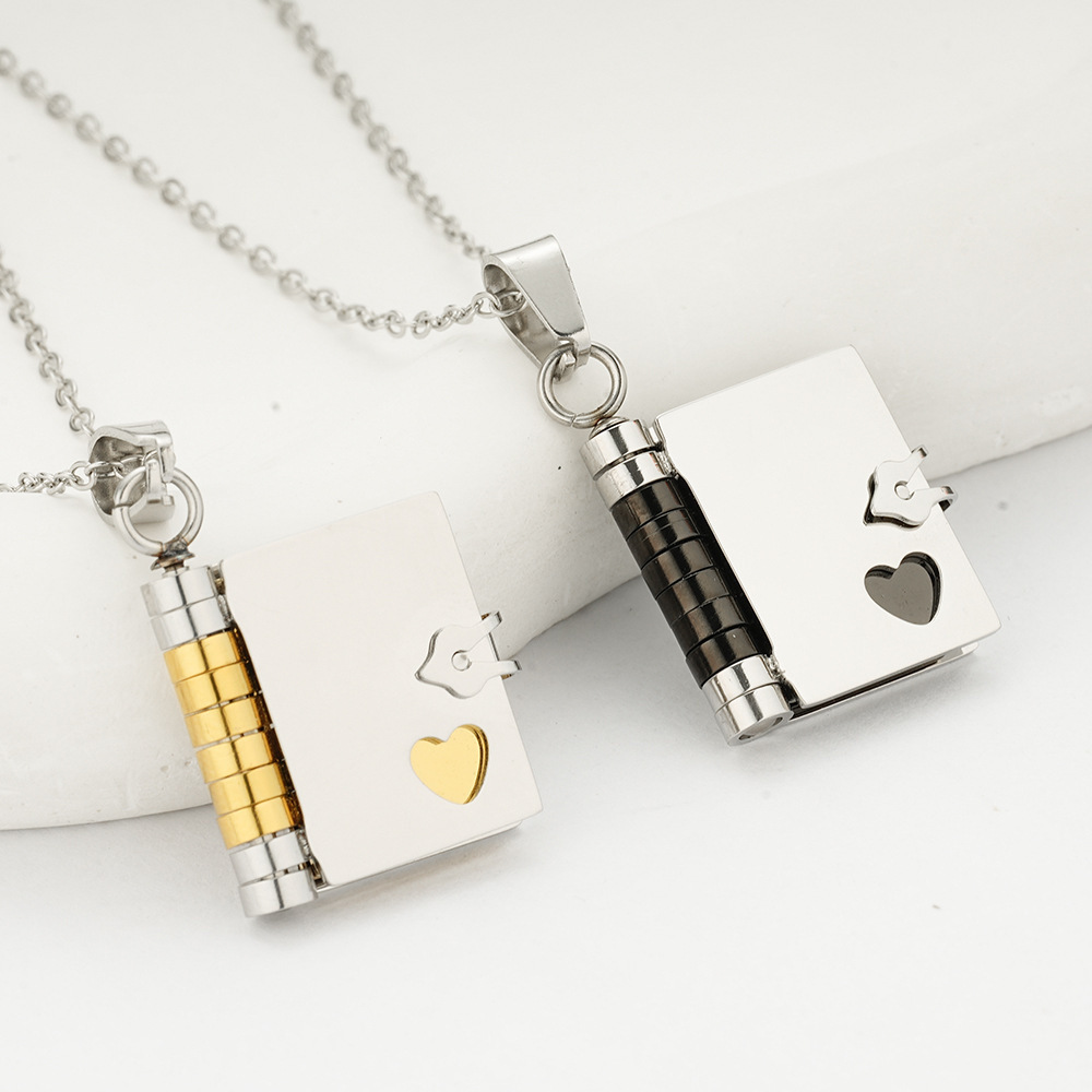 2025春夏新款跨境热卖钛钢女生情书项链可打开吊坠情侣新款个性气