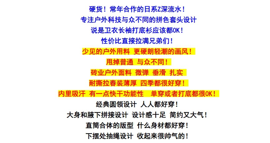 专业户外级!高端压胶!速干透气!秋季男士半拉链长袖打底衫潮