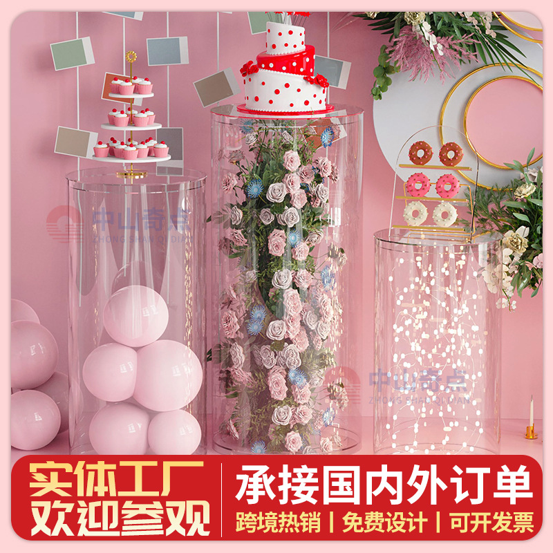 アクリル透明デザート台ケーキ円筒ベーススタンド結婚式誕生日パーティー装飾展示棚
