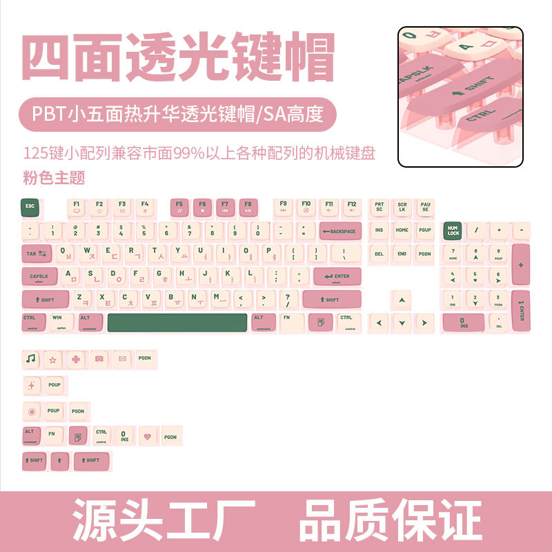 人気のブラックバットメカニカルキーボードキーキャップSA高さ四面半透明プリン五面小型フルセットPBT 125キー