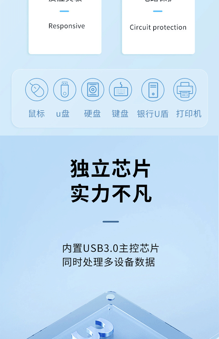 usb3.0扩展器集多插口扩展坞分线器笔记本电脑外接鼠标键盘U优盘