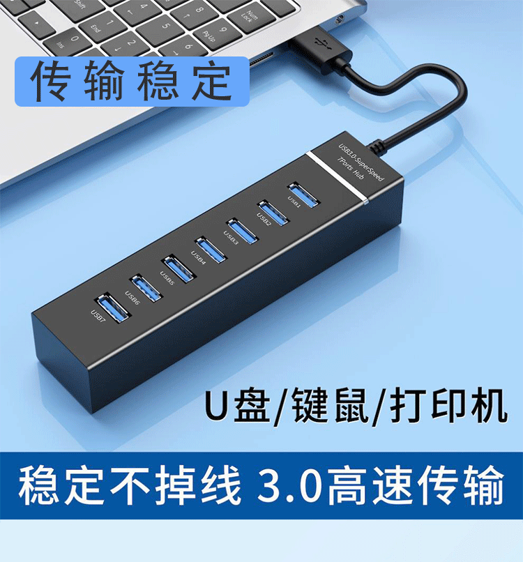 7ポートusb3.0スプリッタ一牽引七変換ハブノートパソコン高速拡張マルチインターフェースhub