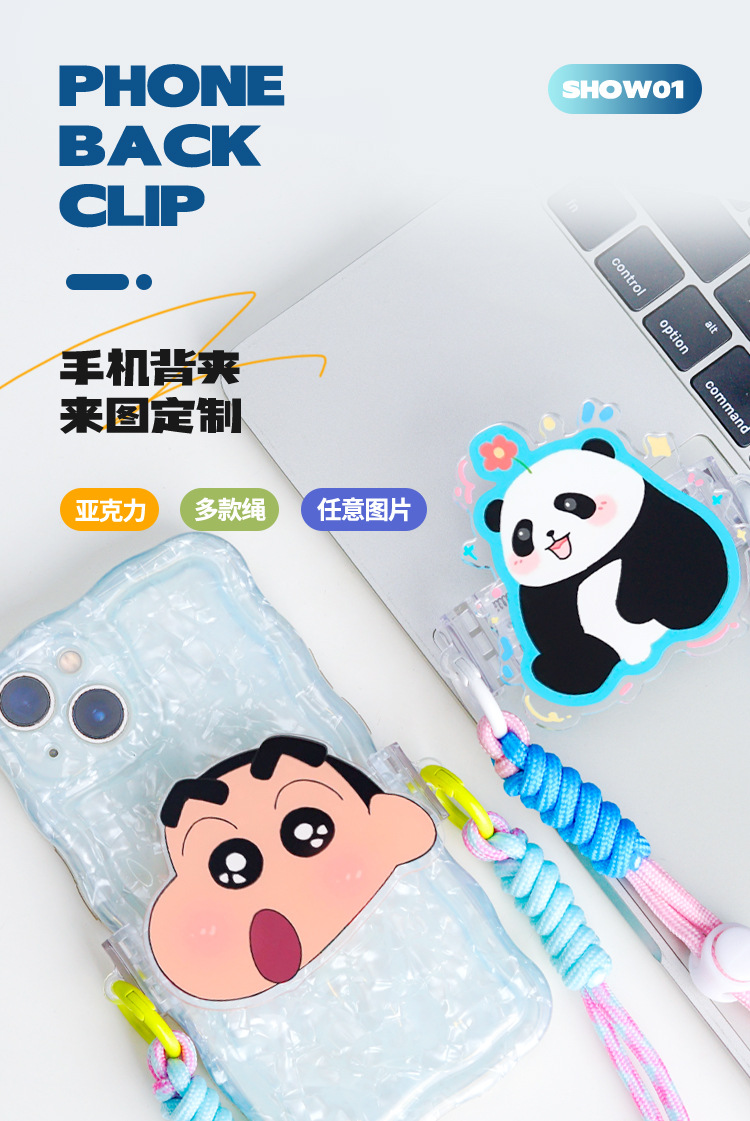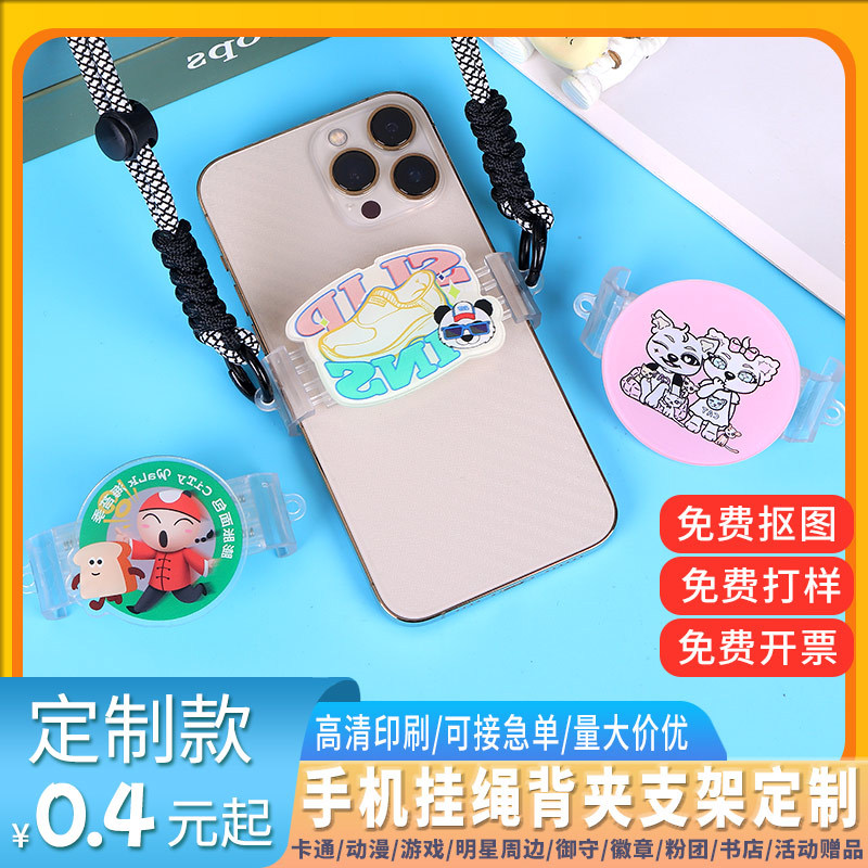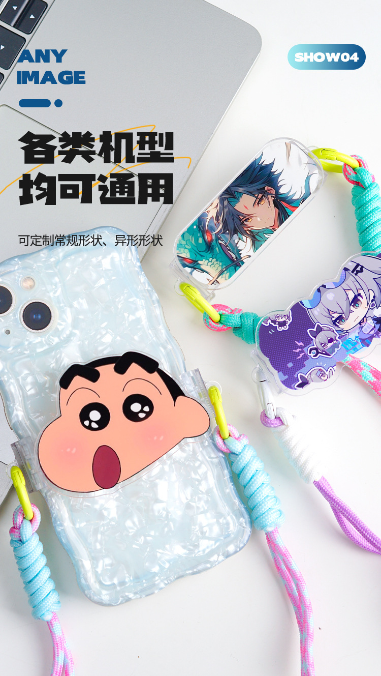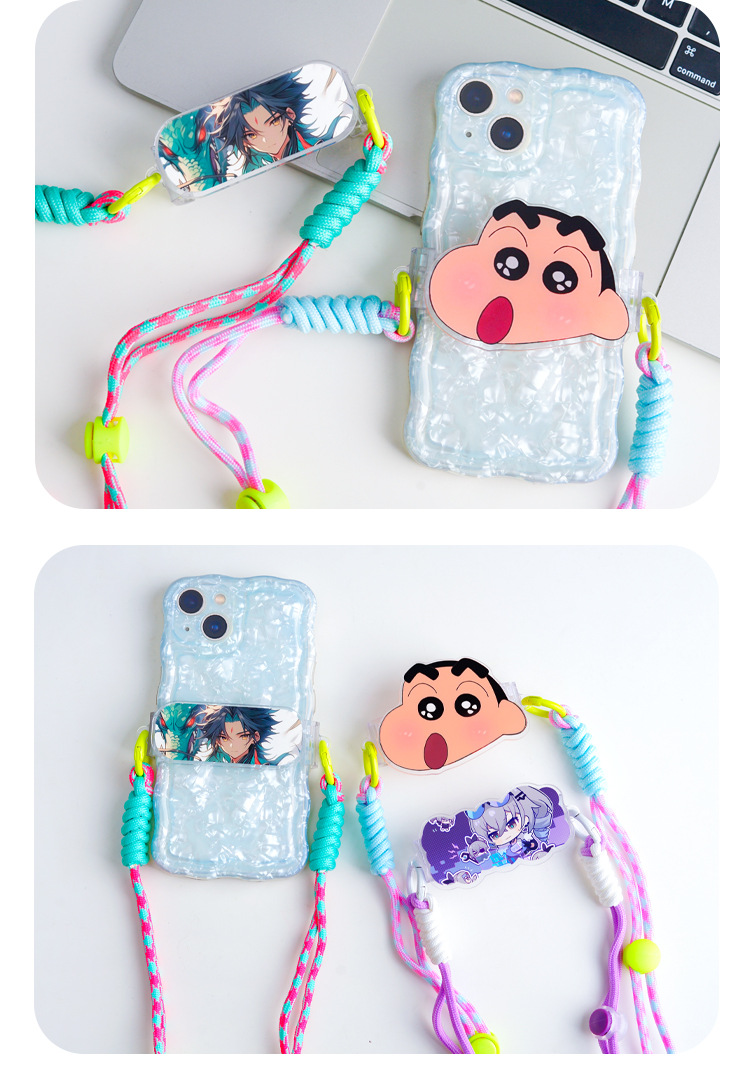 漫画風アクリル製スマホクリップ、斜め掛けストラップ、女の子向けアウトドア多用途、落下防止スマホクリップ、ネックストラップ