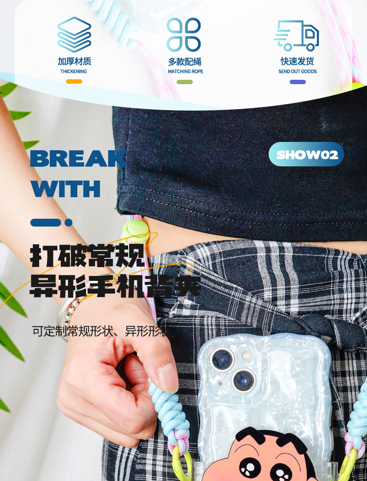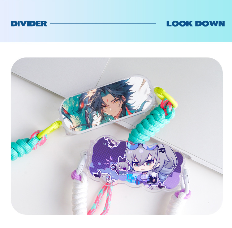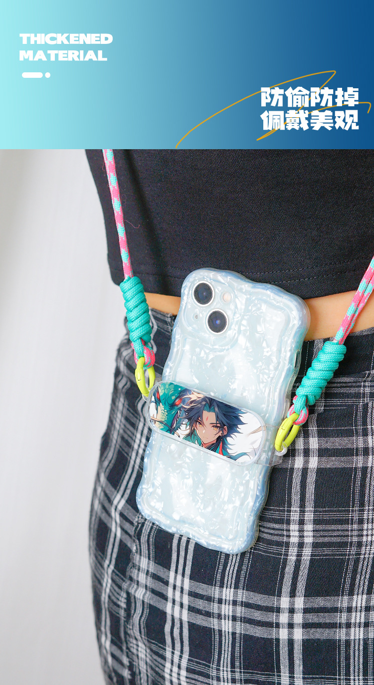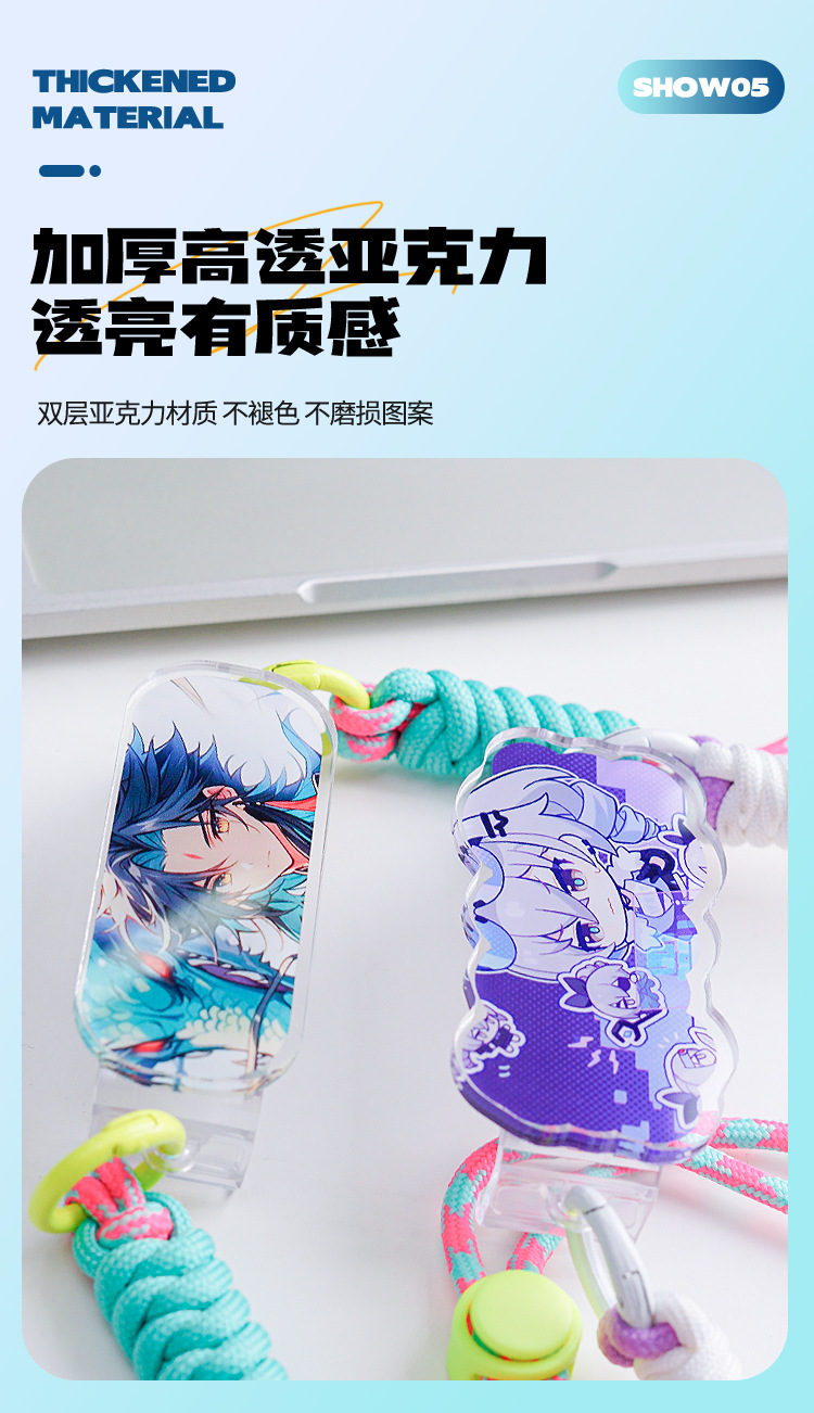 漫画風アクリル製スマホクリップ、斜め掛けストラップ、女の子向けアウトドア多用途、落下防止スマホクリップ、ネックストラップ