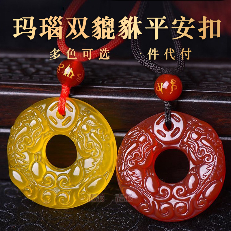【宝贝名称】天然玛瑙玉髓双貔貅平安无事牌吊坠