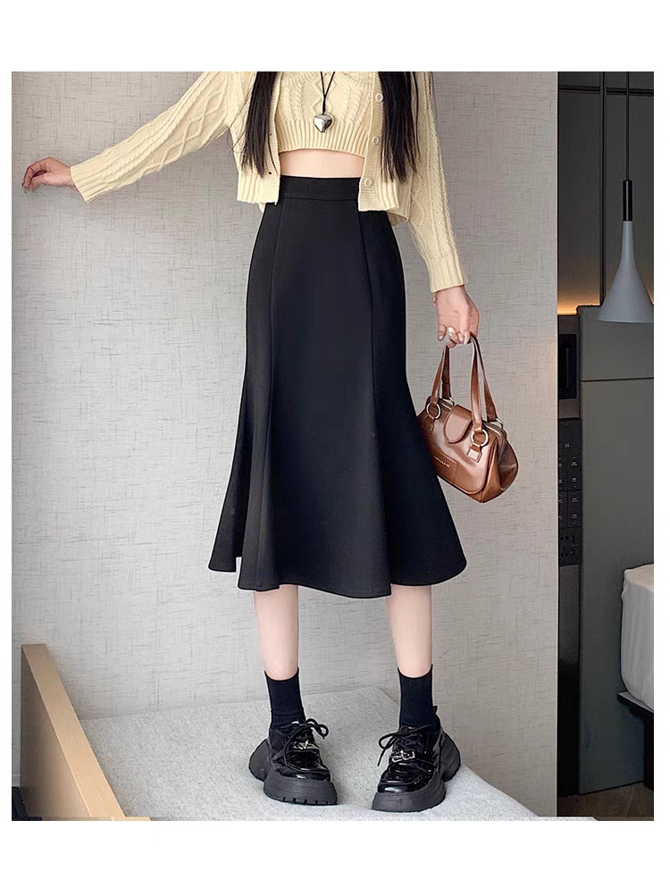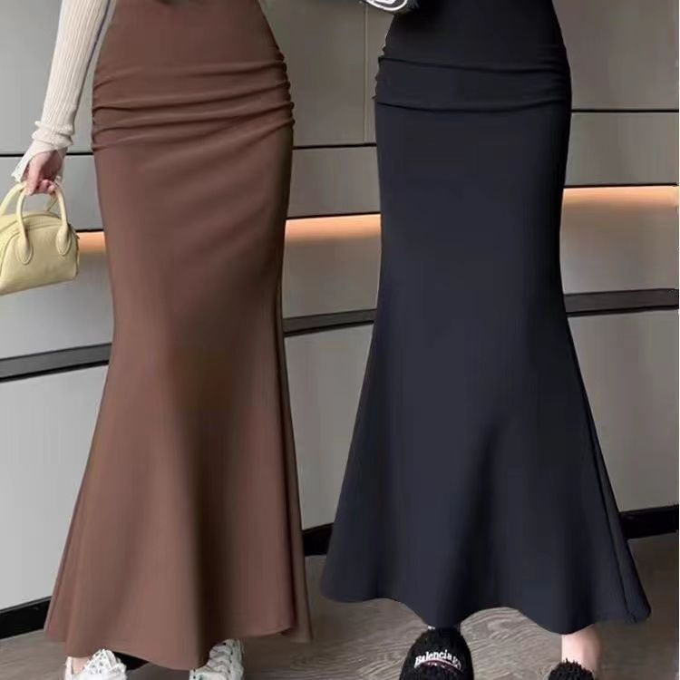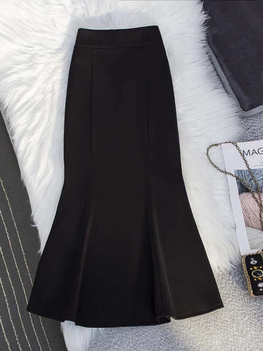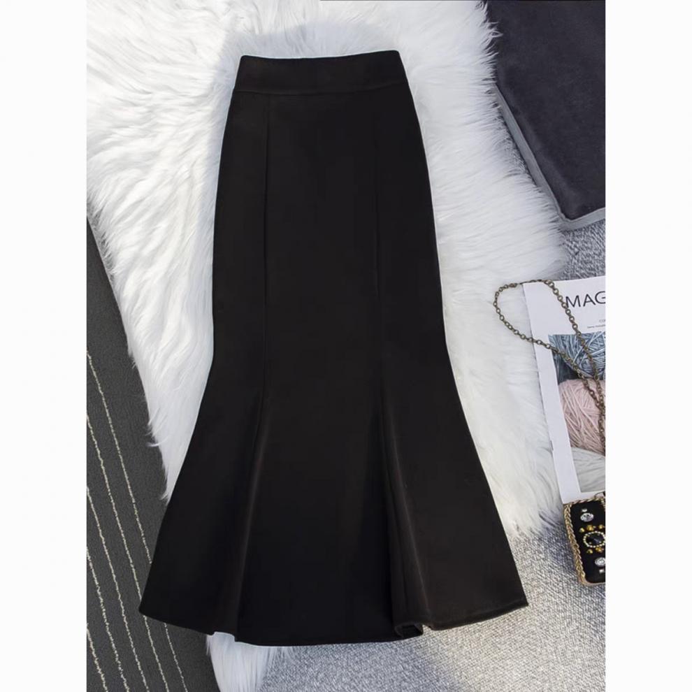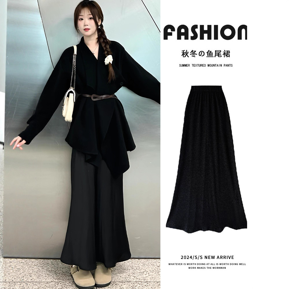 黒いスカートの女性の魚の尾の長いスカートの秋冬2025新型の春と秋のハイウエストの気質のスカートはやせている長いスカートを現します。
