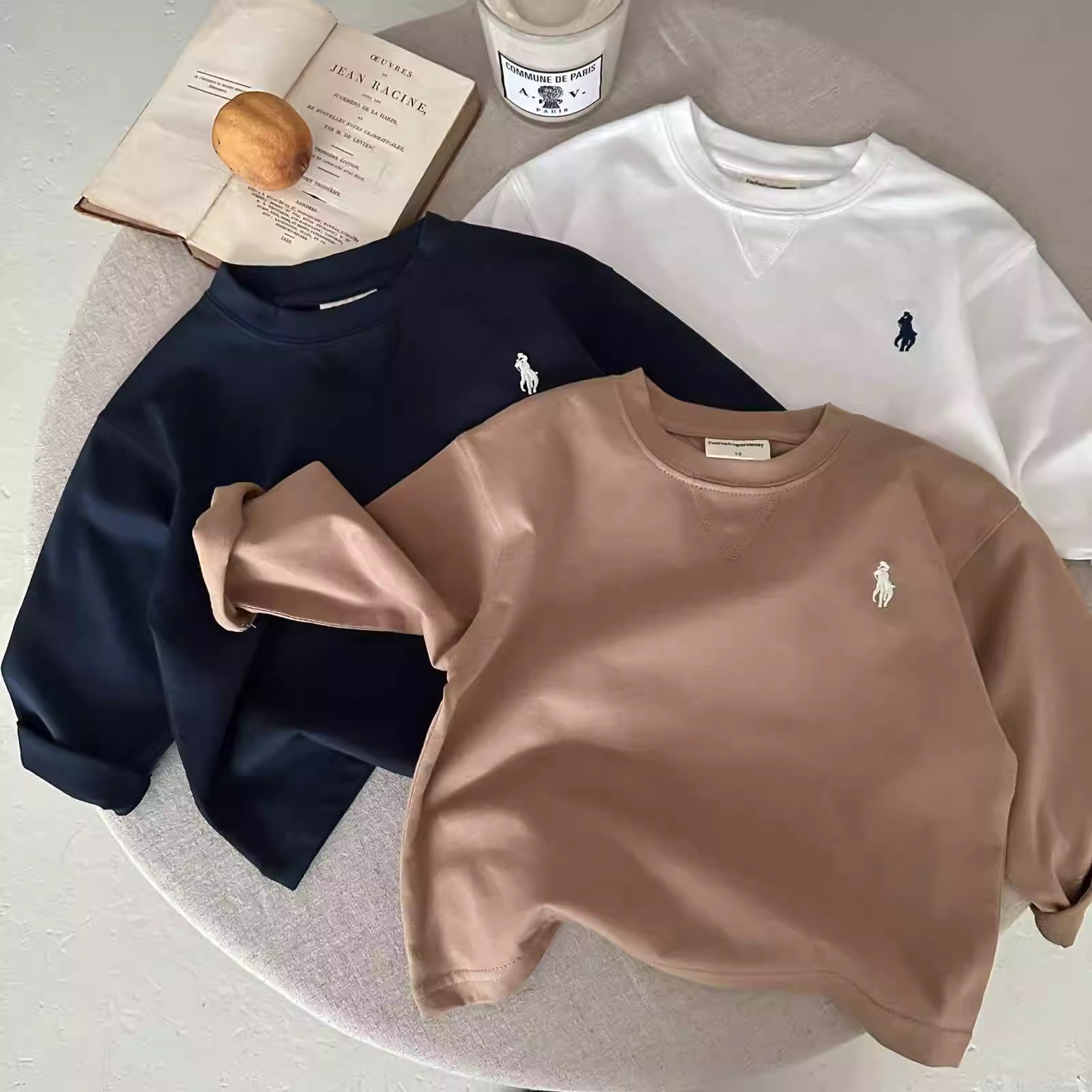 童星円児童tシャツ2025春男女童小馬標長袖底シャツ赤ちゃん純色カジュアル上着潮t
