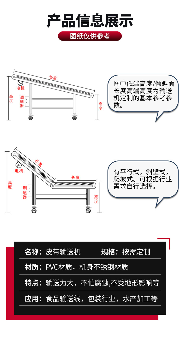 小型ベルトコンベア食品加工PUベルトコンベアライン移動式スカートベルトコンベア