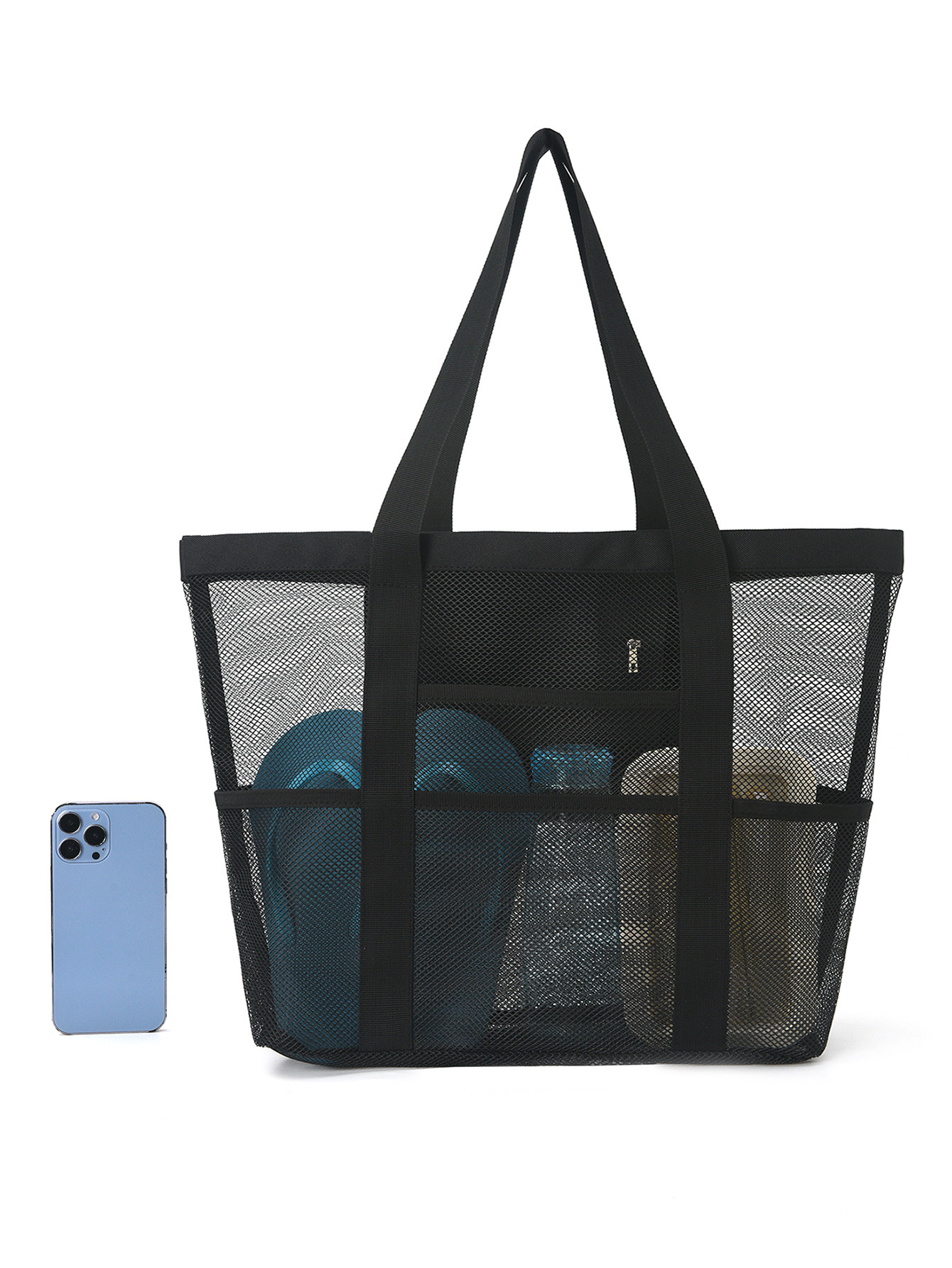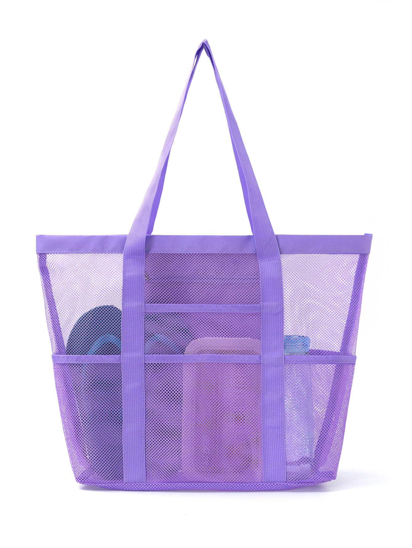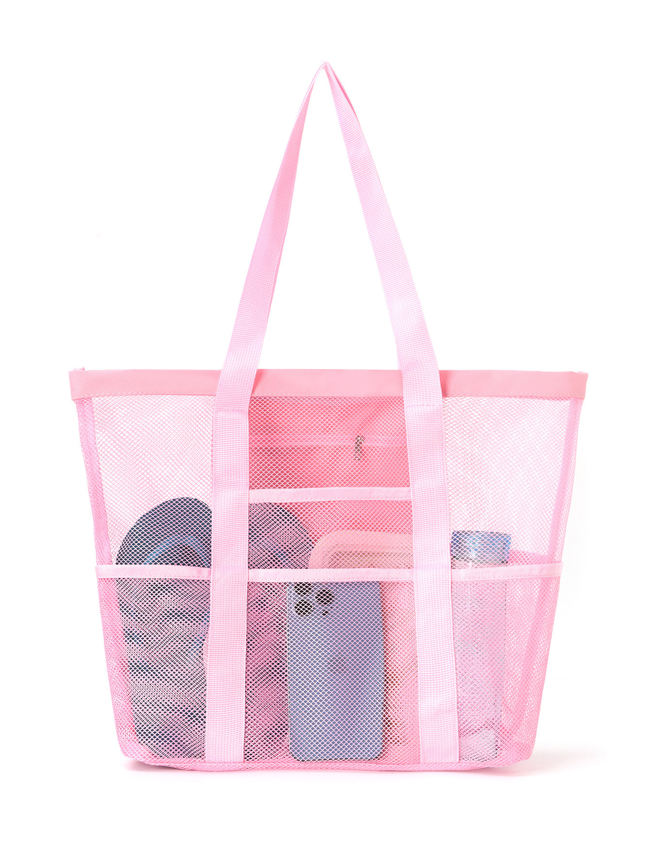 ビーチバッグアマゾンメッシュビーチバッグ8ポケット浴室バッグ玩具収納バッグ大容量メッシュ透かし彫りバッグ