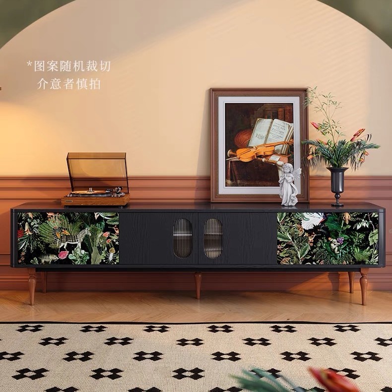 法式中古风实木电视柜客厅设计师储物柜靠墙电视机柜玻璃门边柜