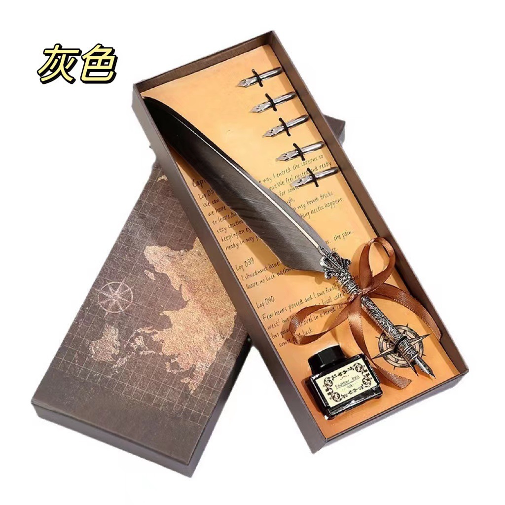 皇冠羽毛笔蘸水笔钢笔雕花底座套盒开学季毕业季教师节生日送同学