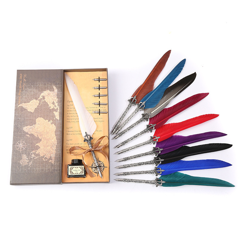 ヨーロッパ風レトロ羽根ペン、水性ペン、万年筆、金属彫刻台座、ペン立て、ペンアクセサリー、メーカー卸売プロモーション