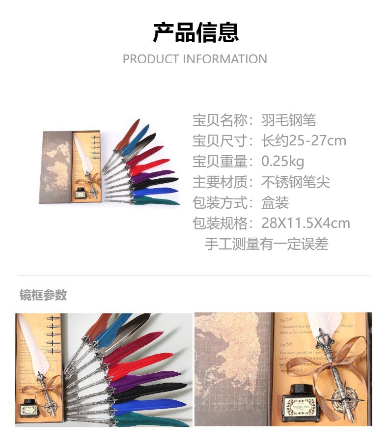 欧式复古枫叶银杆羽毛笔蘸水笔钢笔商务企业学生毕业生日礼品促销
