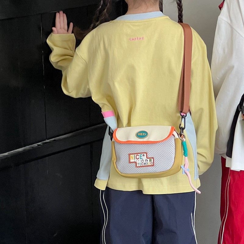 儿童包新款韩系字母户外运动斜挎包洋气男女童多巴胺单肩包配饰包