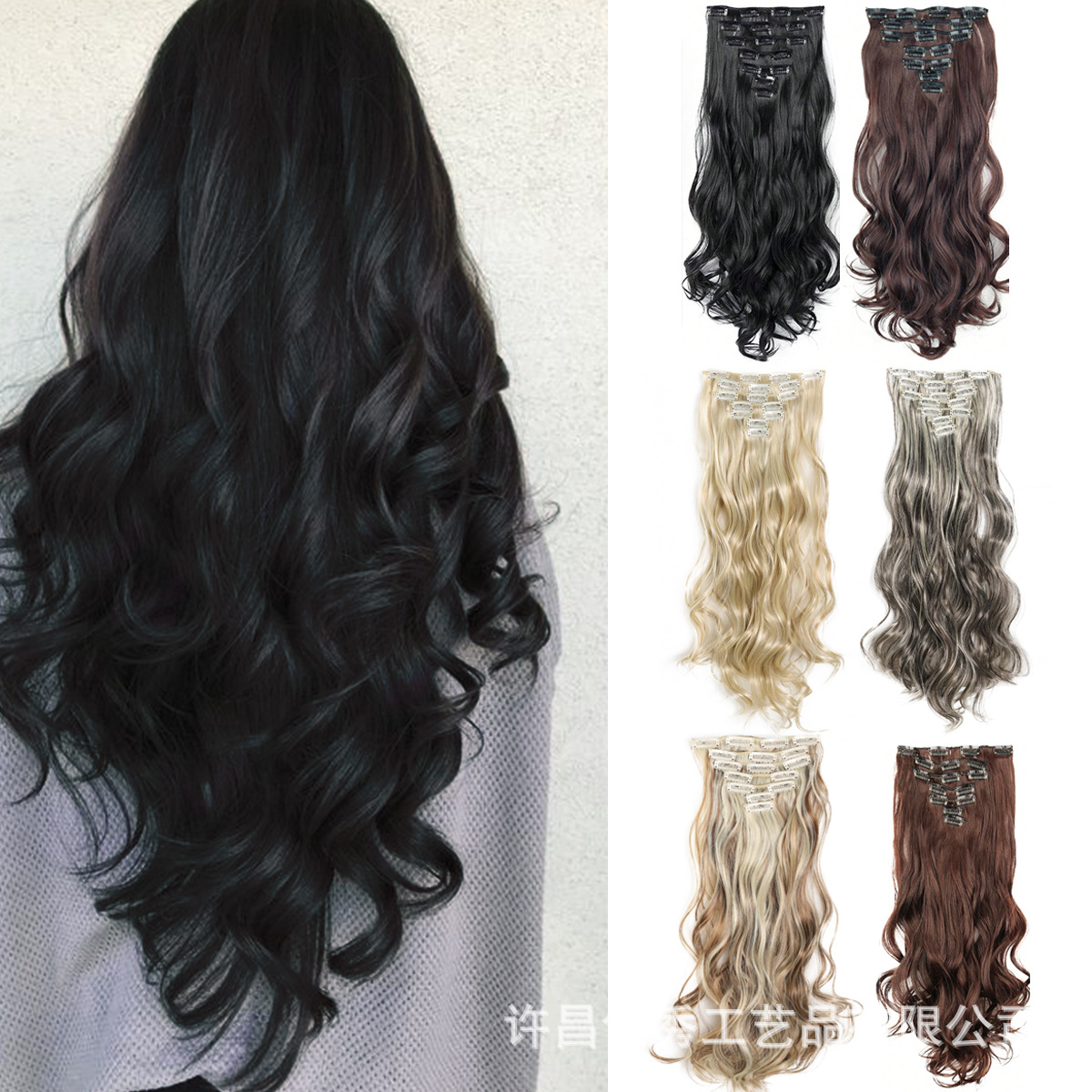 7点セットの外国貿易かつら欧米の女性16枚の化学繊維の髪の切れの大きい波の長い巻き髪のカードのメーカーの卸売り