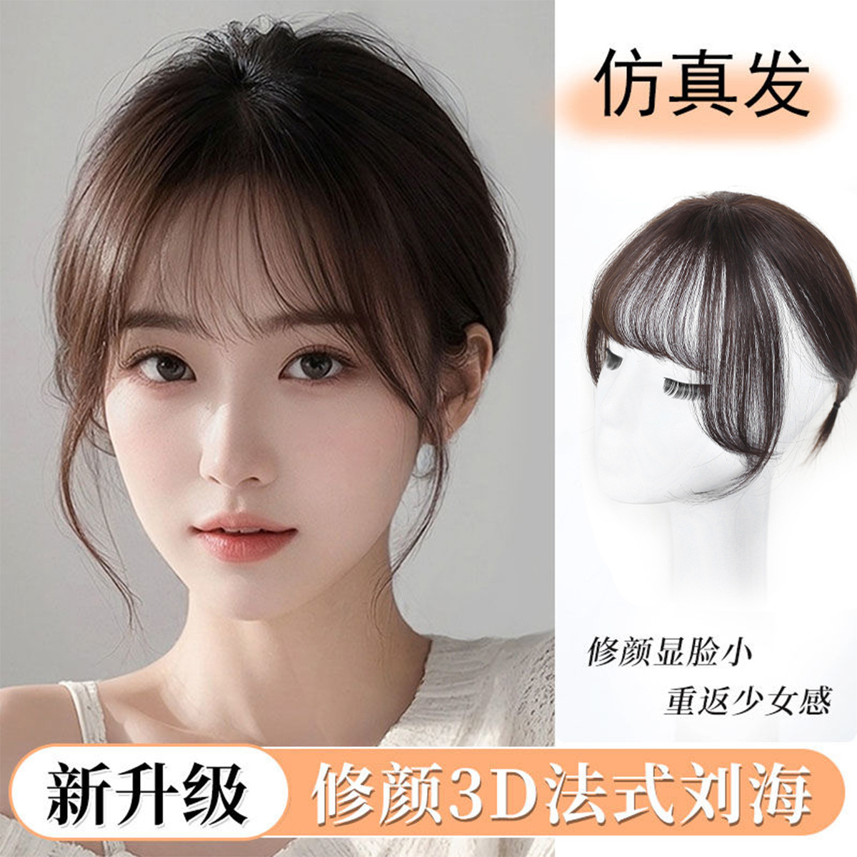 前髪かつら女3dフランス式自然ステルス無痕装飾額空気偽前髪頭頂再髪かつら