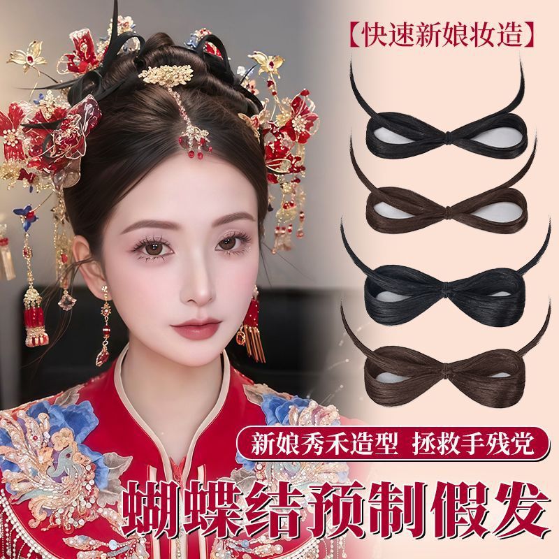 漢服かつら新中国式プレハブ頭二重蝶ネクタイ髪包秀禾花嫁怠け者三分減齢造形