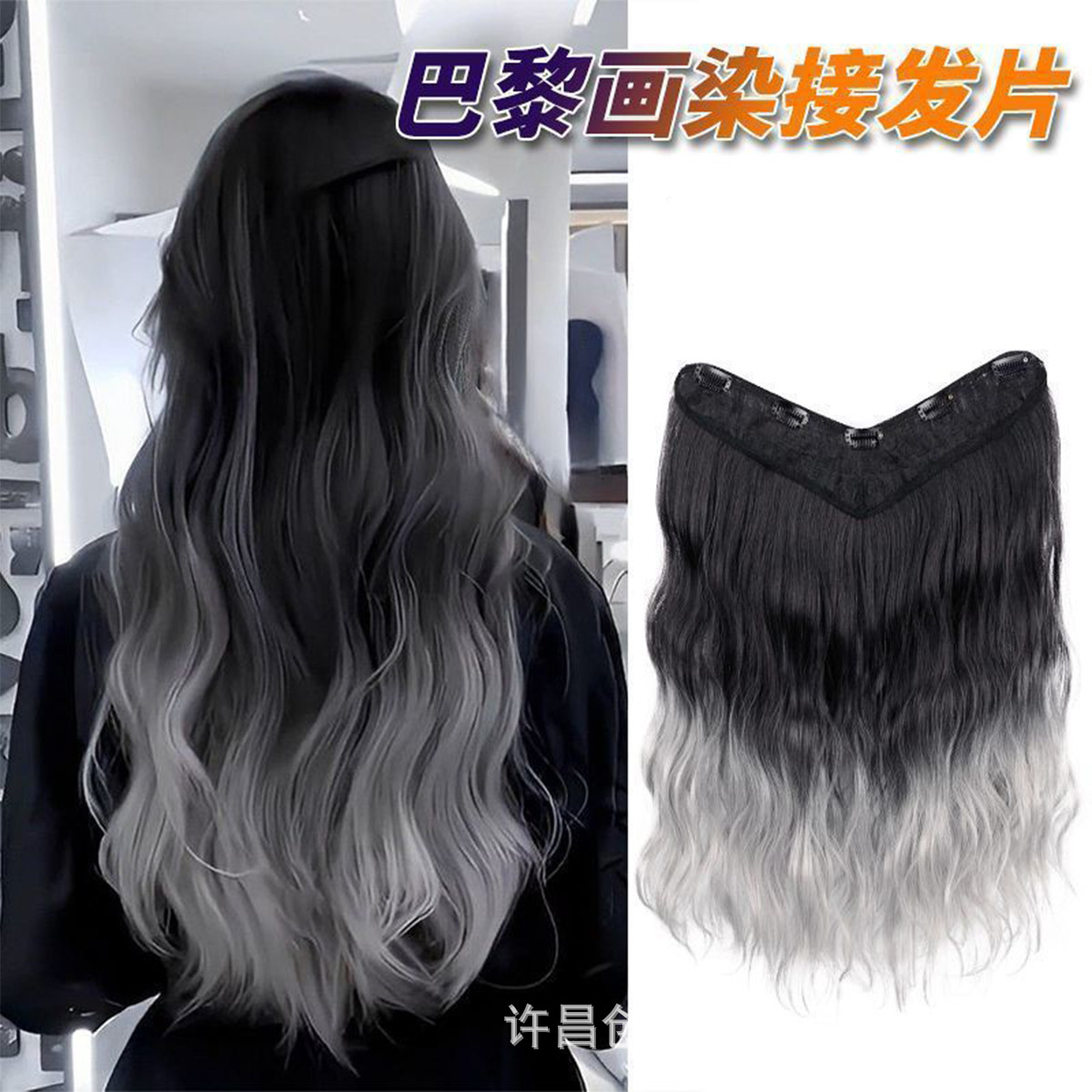 かつらの一枚のグラデーションの水のうねりの髪の切れの女性のステルスの跡がなくて、髪の切れのふわふわしているシミュレーションのかつらの現物を貼ります。