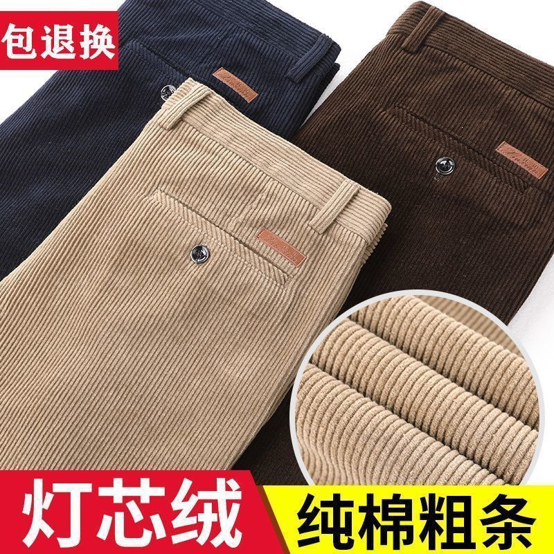 新款男士灯芯绒裤子中老年高腰厚款直筒裤高腰宽松粗条绒休闲长裤