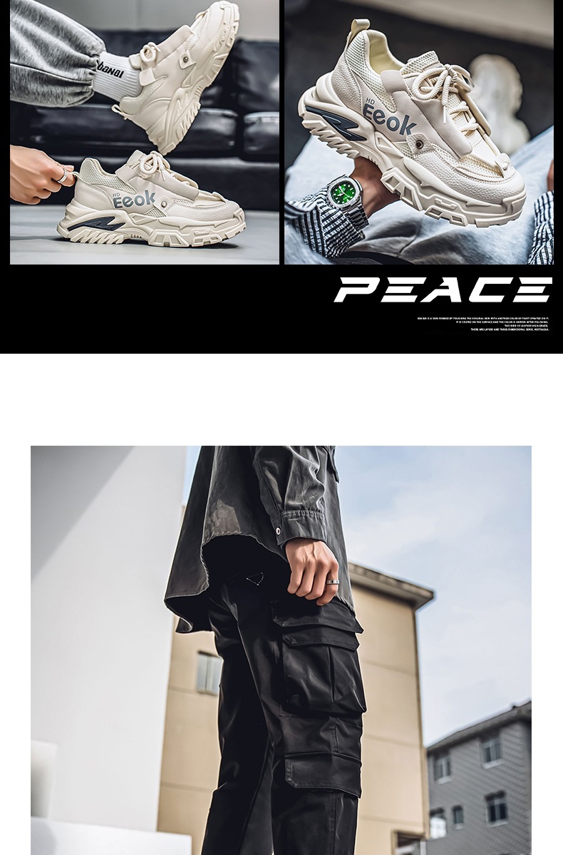 2025生放送の春の厚い底が高くなりました。反絨通気運動阿甘靴の個性的なストラップと香港風のショーの男性靴です。