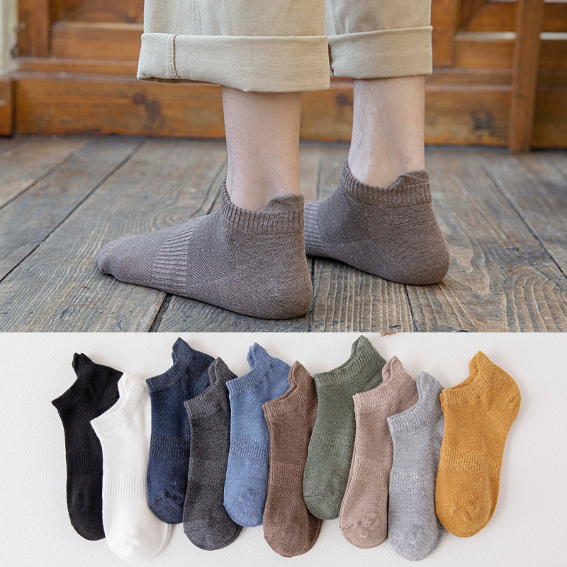 靴下の男性の日本のウエストの靴下の通気性の網の目の見えない男性の靴下の浅い口の純色の大きいかかとの綿の靴下の卸売り