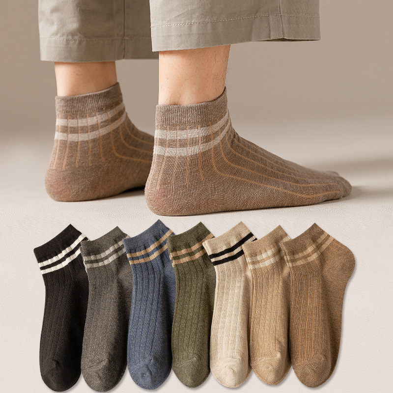 男性の靴下春夏の2つの棒の靴下の男性のレジャー学院の風のソックスは通気性の浅い口の綿の靴下を引き出して汗の靴下の男性を吸います。