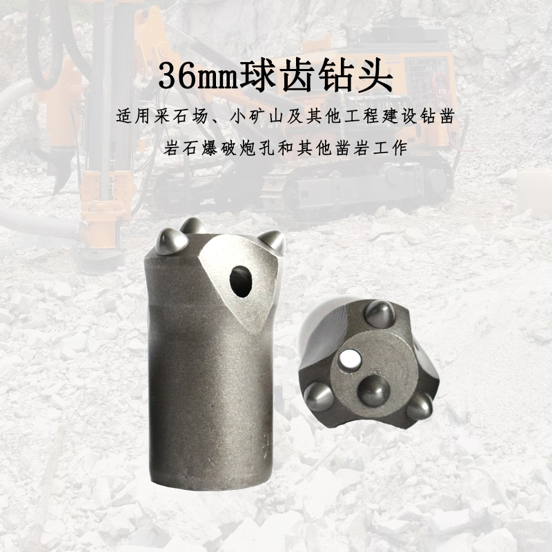 36mm球歯ドリル削岩機高強度削岩破砕耐摩耗超硬合金4歯採鉱トンネル工事