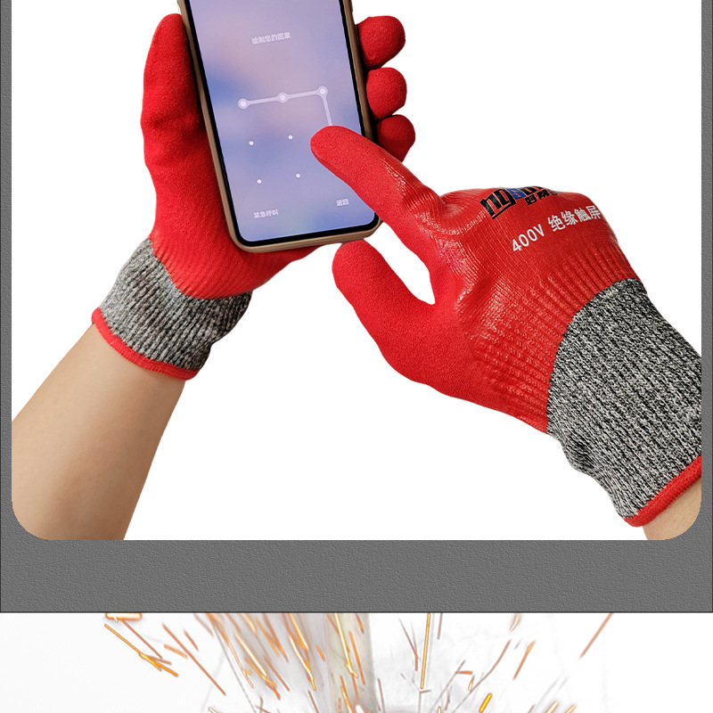 絶縁手袋電気技師専用帯電作業感電防止380v低圧超薄ゴム400V高圧専門
