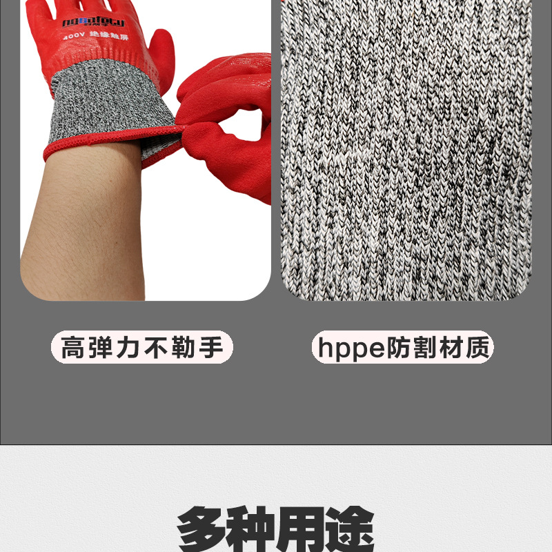 400v電気工絶縁手袋防電低圧220V電気工修理専用ゴム超薄型柔軟滑り止め耐摩耗性
