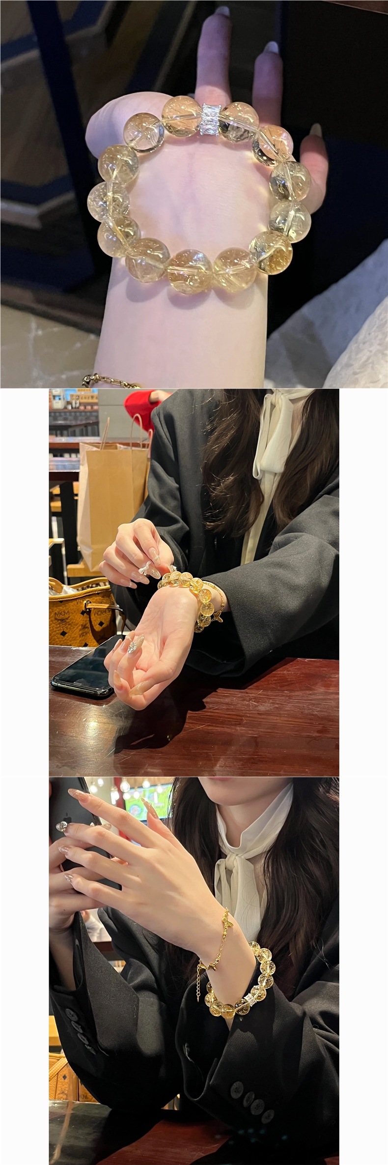 暴富設計黄阿試合ブレスレット女黄水晶手串招財輸送大サイズ軽豪華小衆精致手串