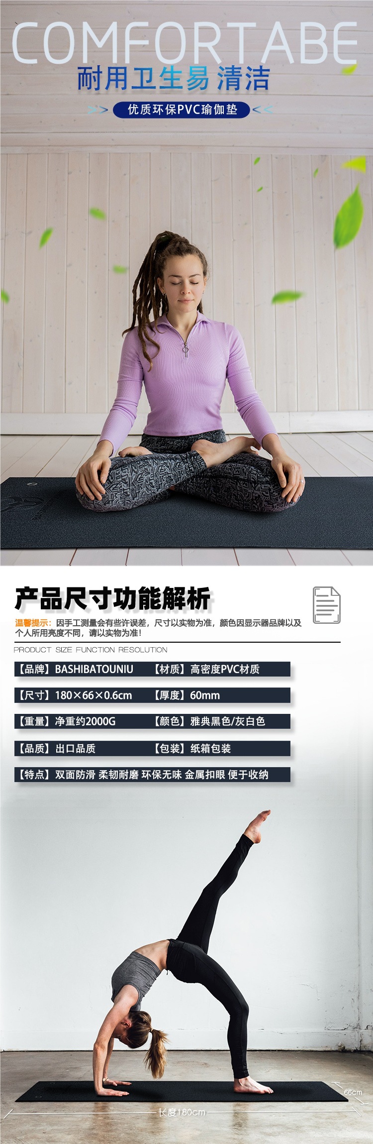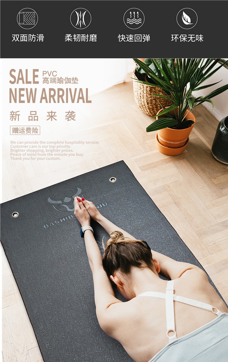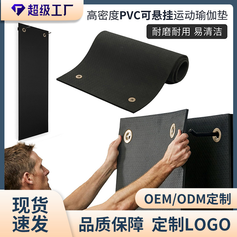 跨境瑜伽垫PVC黑色高密度防滑健身运动垫打孔悬挂式瑜伽馆专业垫