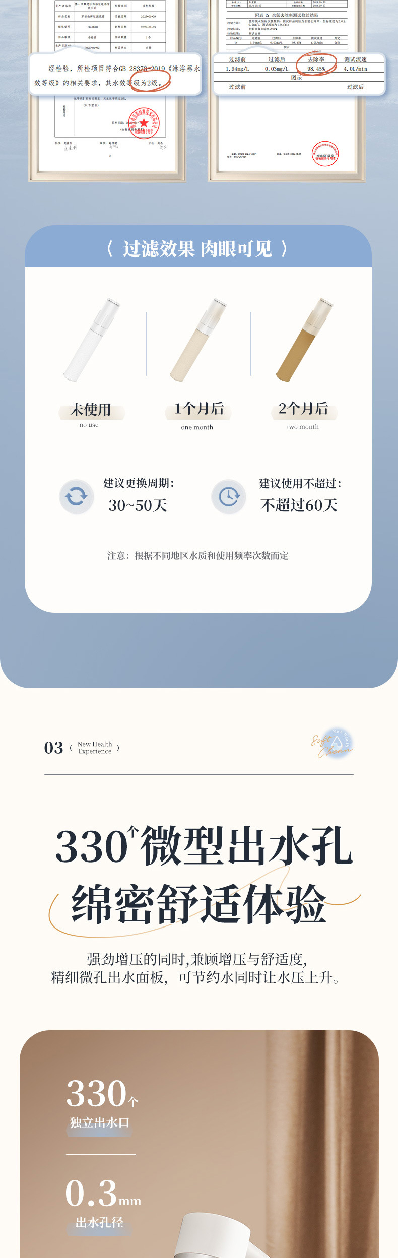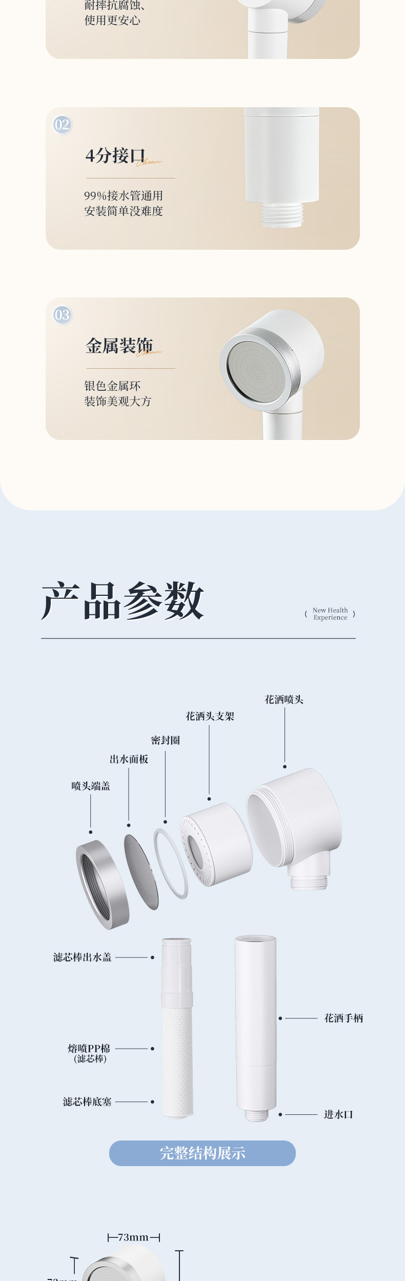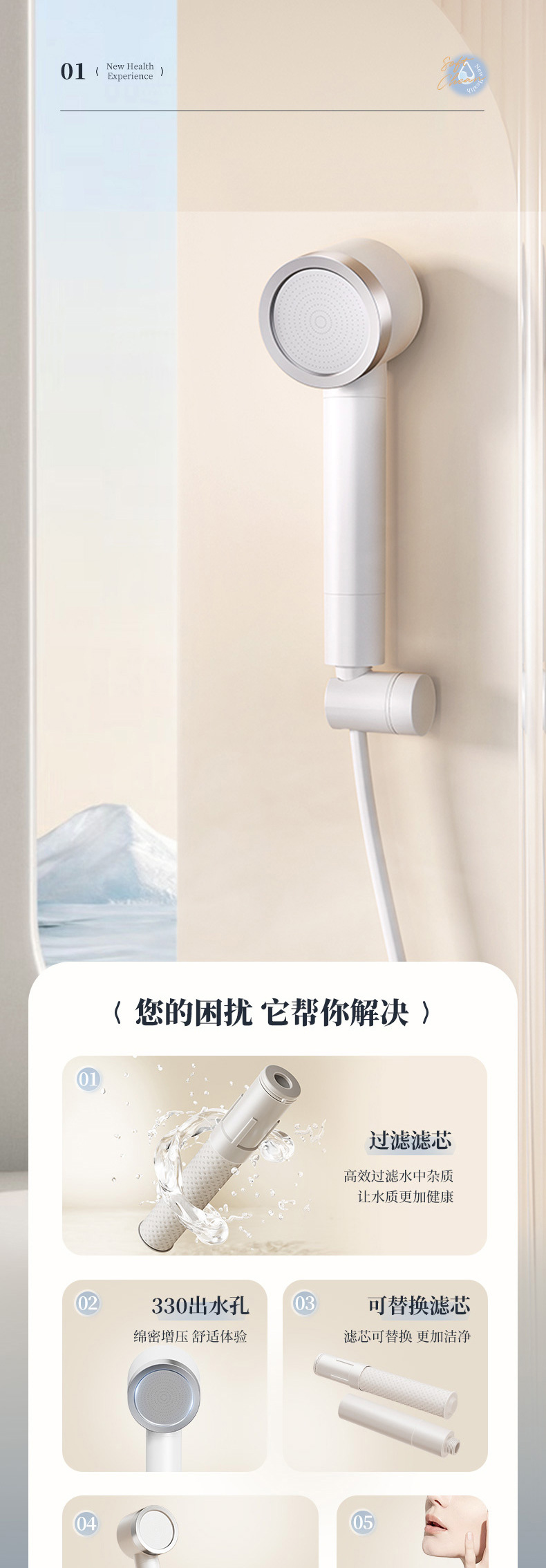 ドイツのクリームホワイト加圧フィルターシャワーヘッド超強力家庭用加圧シャワーヘッド浄化フィルターシャワーヘッド