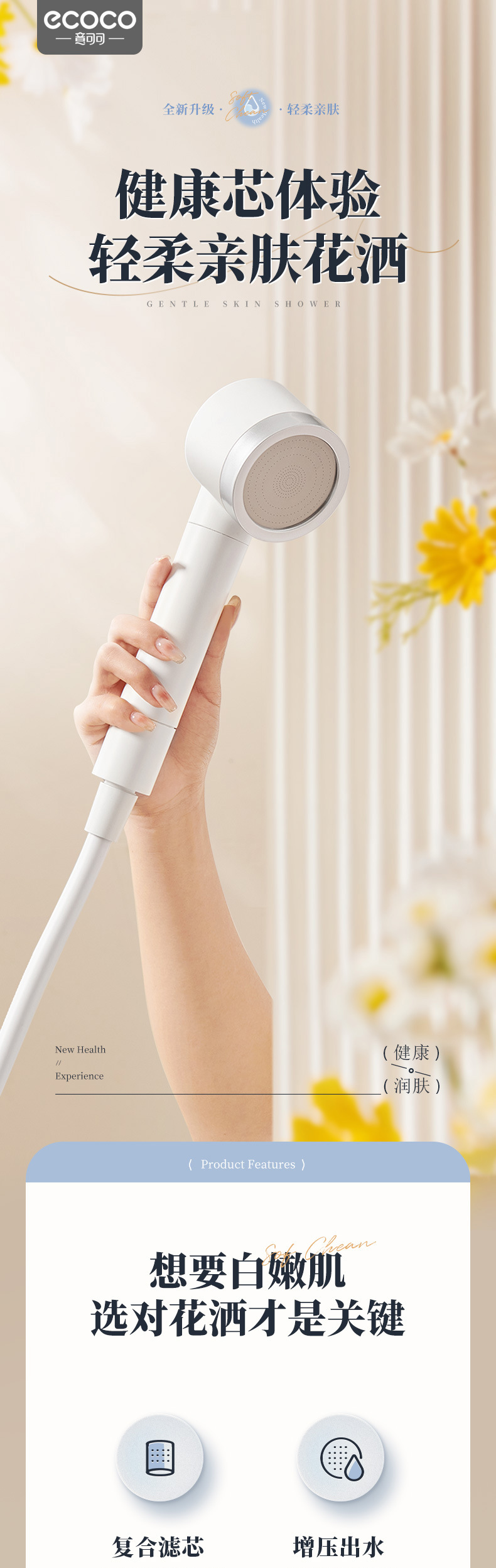 ecoco バスルームスーパーチャージシャワーヘッド肌に優しいソフトフィルター加圧調整可能な交換浄化シャワーヘッド