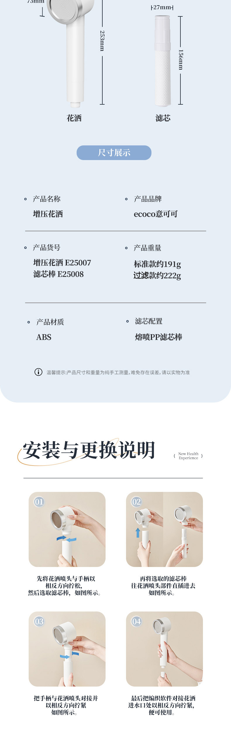 エココ意ココア手持ち増圧シャワー家庭用トイレ浴室バスバーフィルター付き塩素除去シャワーヘッド