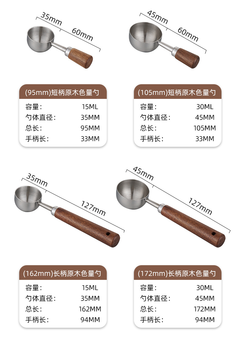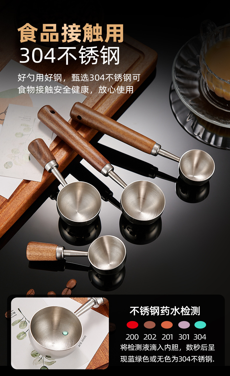 メーカー直販304ステンレス計量スプーンコーヒー粉ミルク計量スプーン木柄は粉をつけないで錆びない調味料計量スプーン