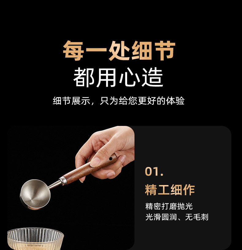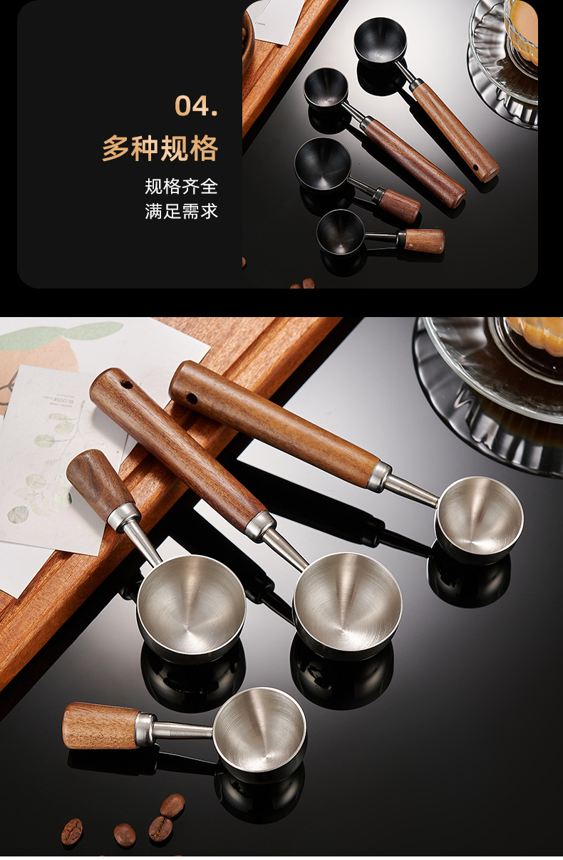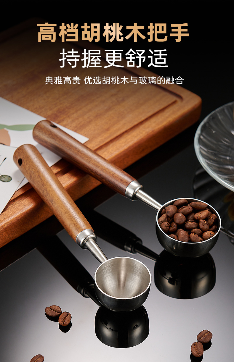 クルミハンドルコーヒースプーンコーヒー豆定量スプーン304ステンレス鋼コーヒー豆専用スプーン調味料計量スプーン