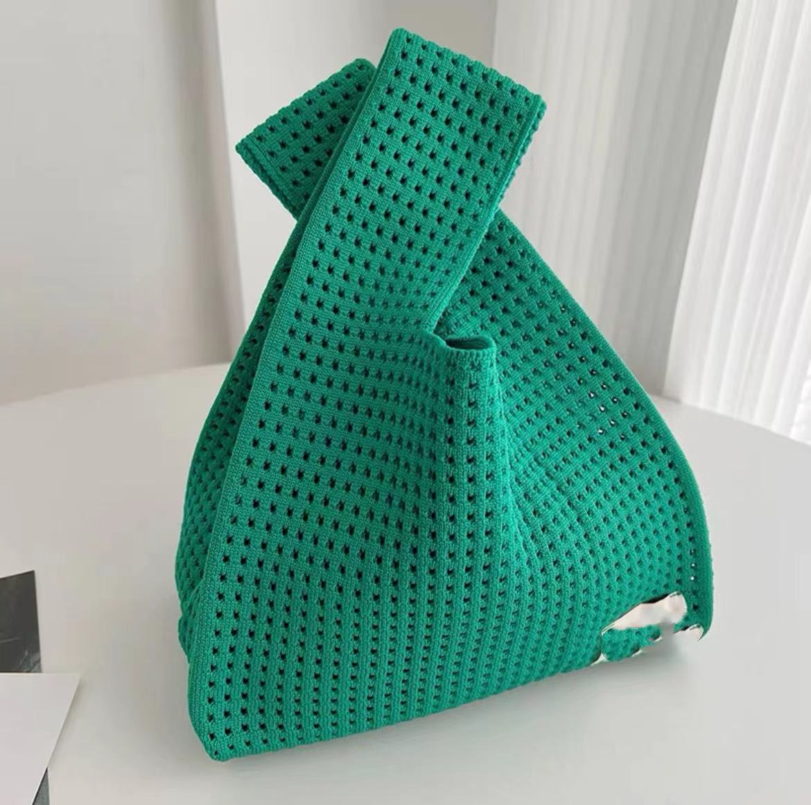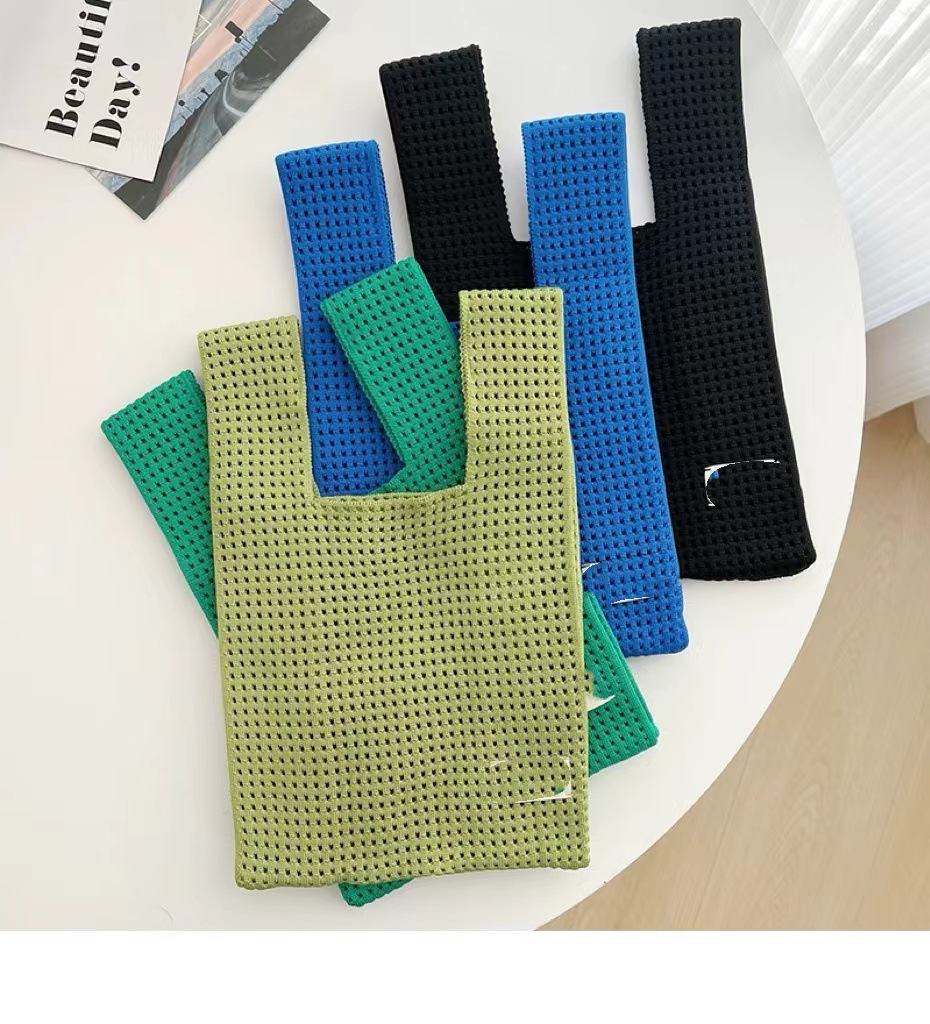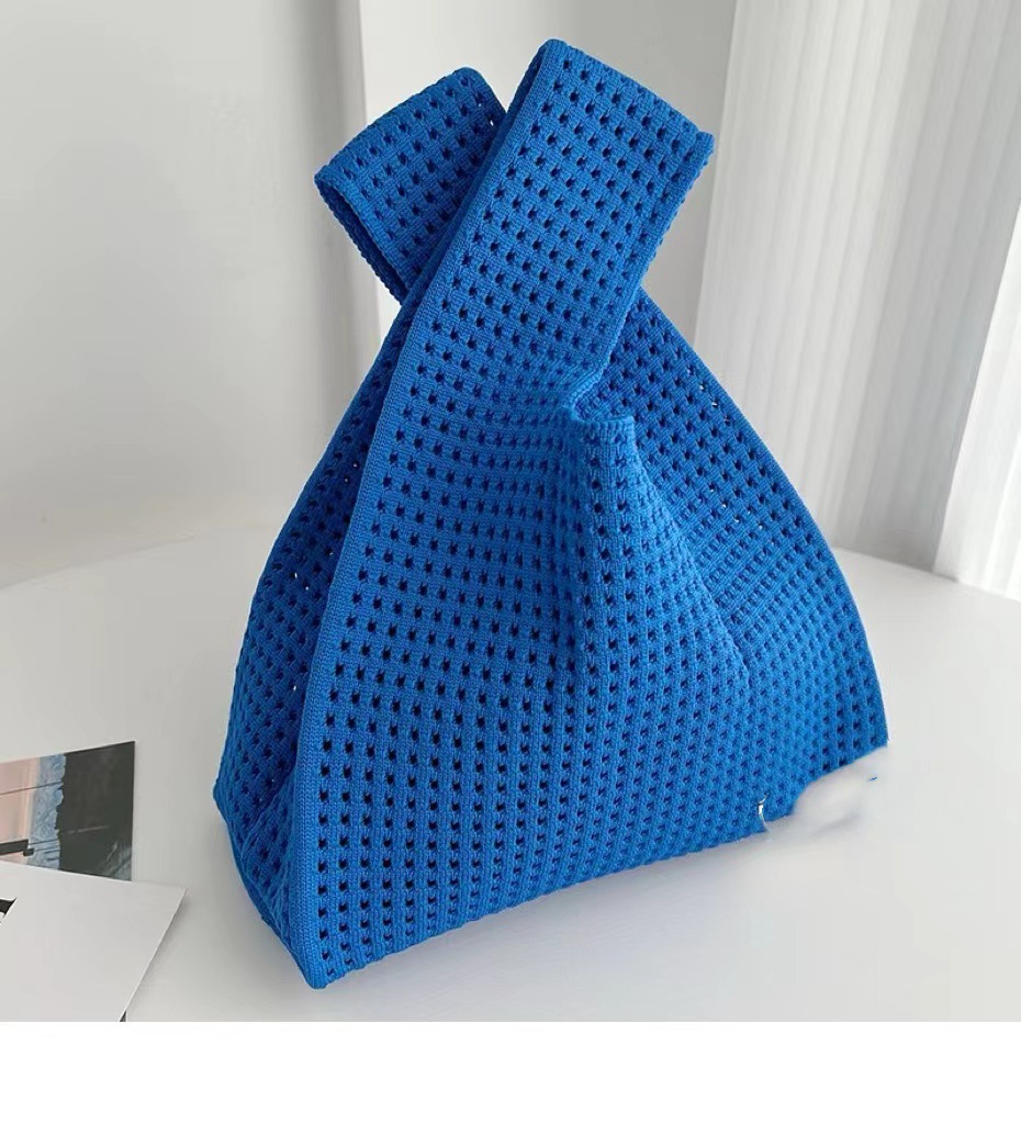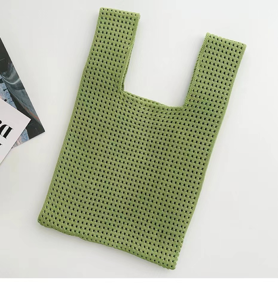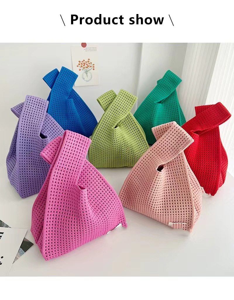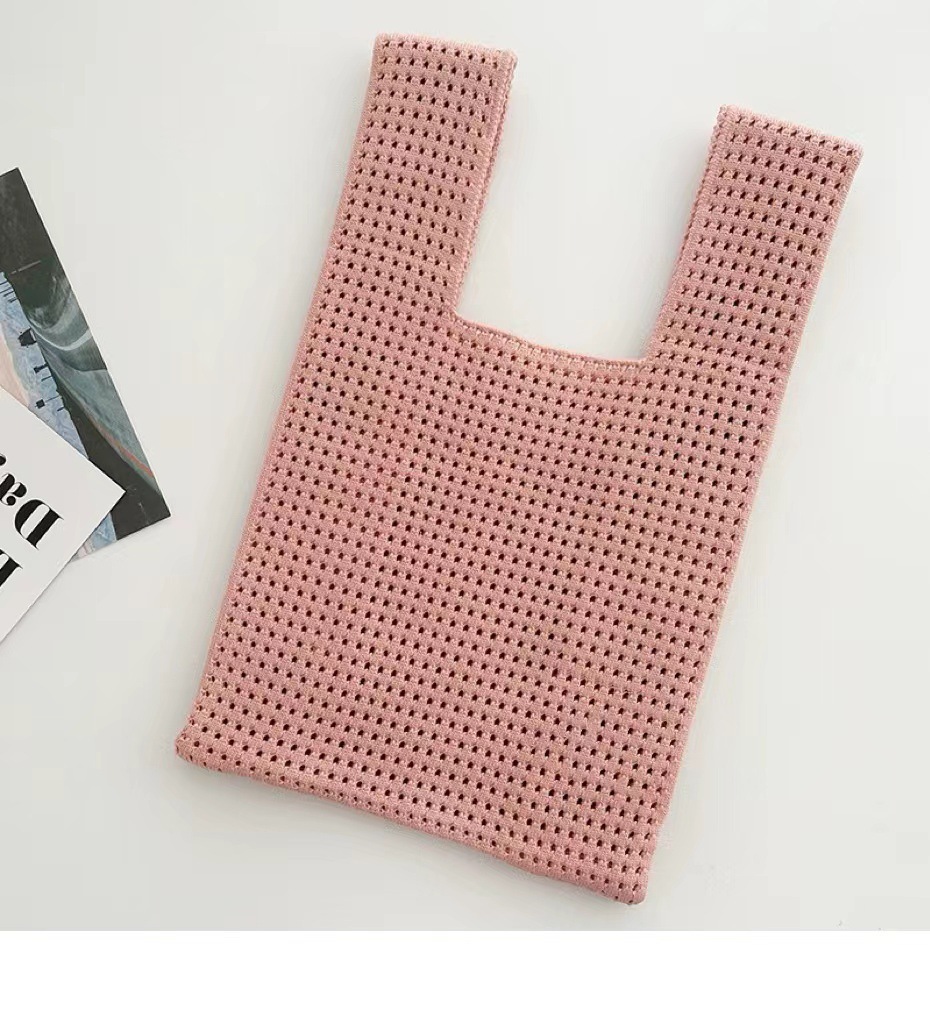 日韓の透かし彫りの純色のニットのハンドバッグのネットの赤い馬の甲のベストは春夏に百合の大容量のメッシュの腕の包みを包みます。