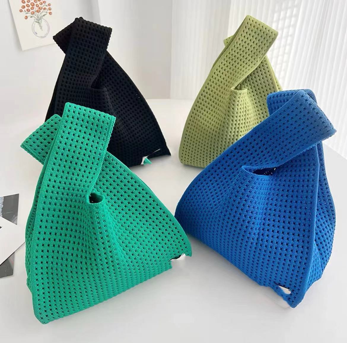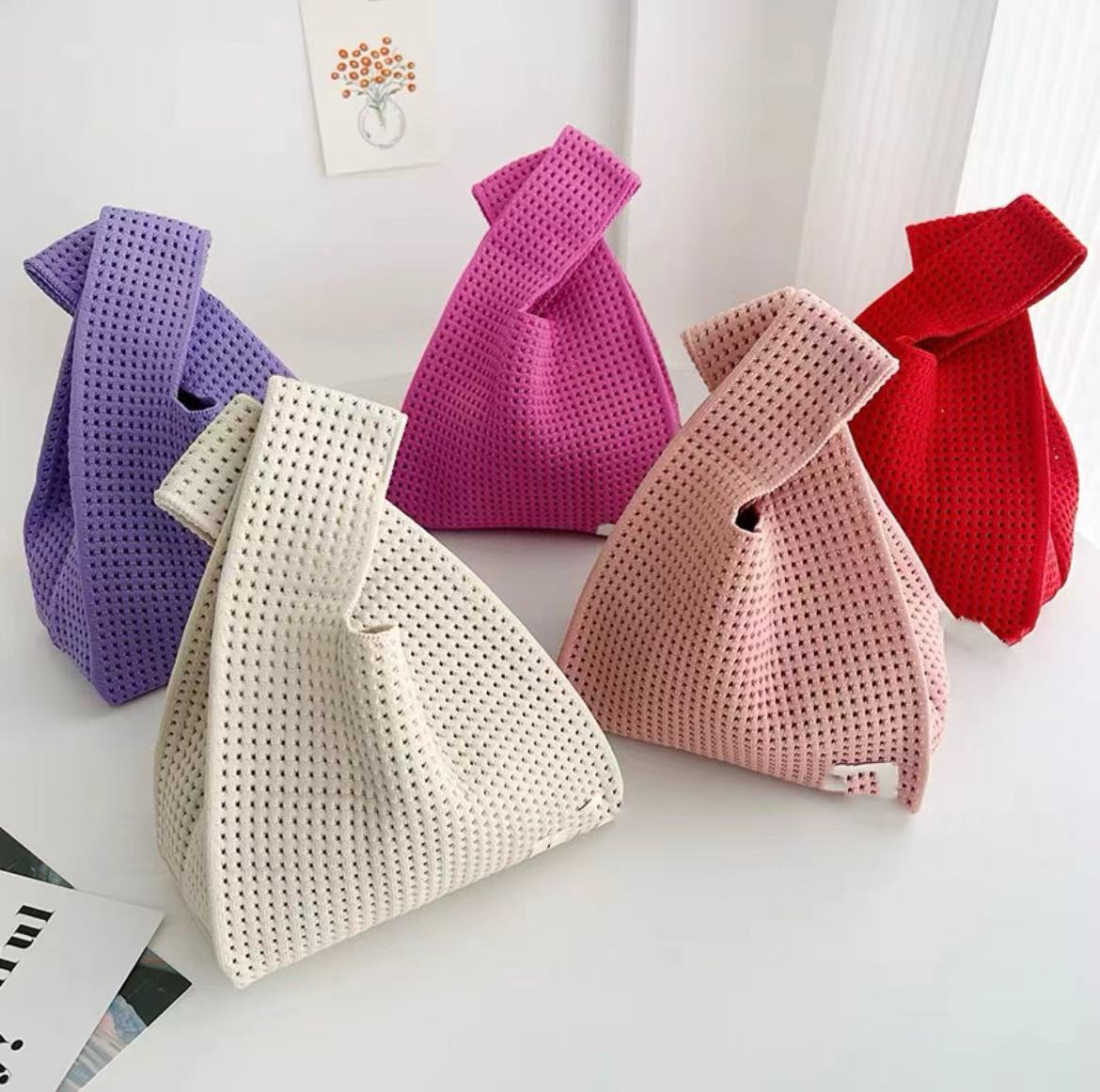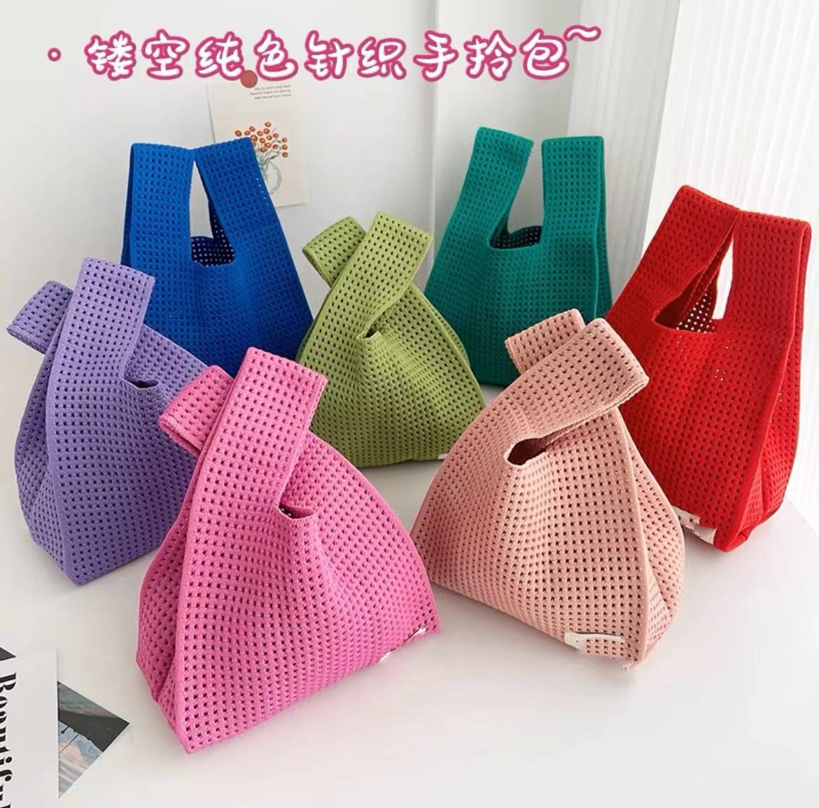 大衆がキャンディー色のシンプルなニットのハンドバッグをデザインしています。