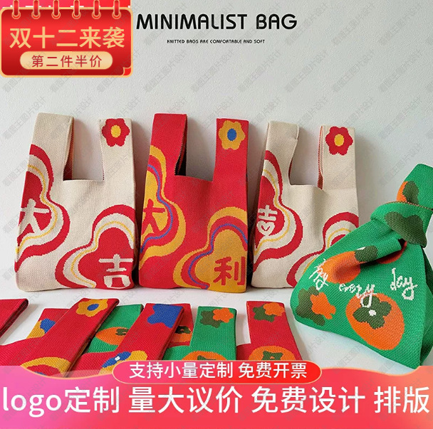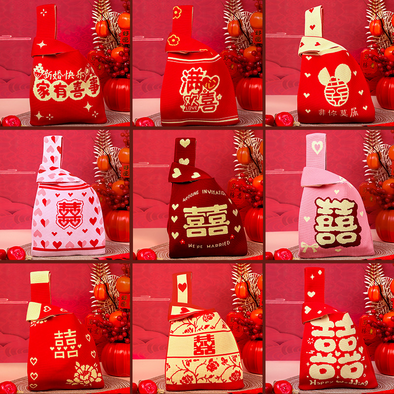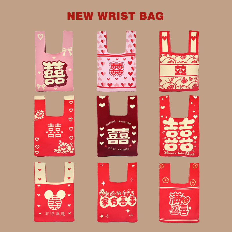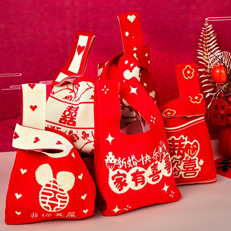 新年主题红色吉祥如意喜庆手腕包百搭伴手礼手提包喜糖乔迁针织包