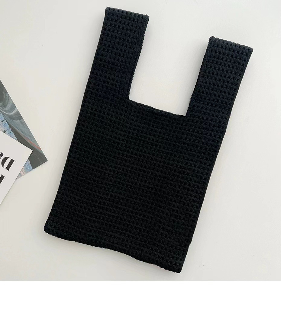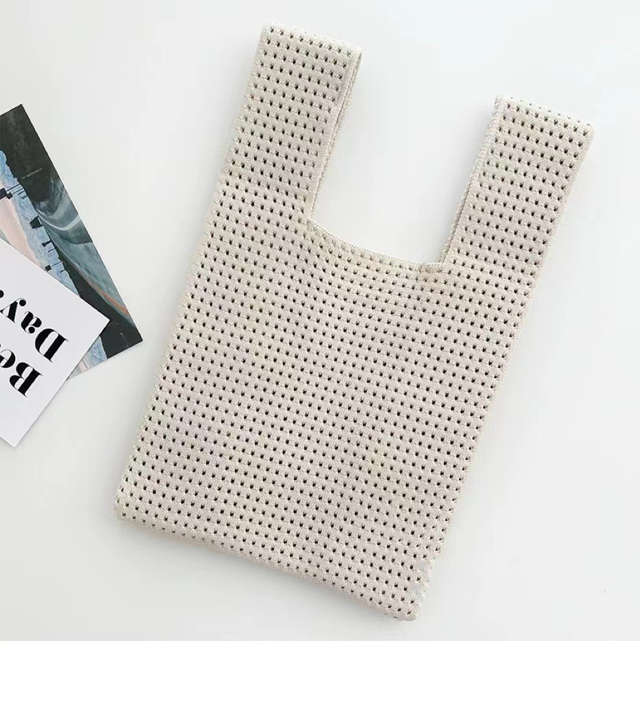 韩国加重加厚日韩纯色简约复古镂空针织手提包包女背心包敞口水桶