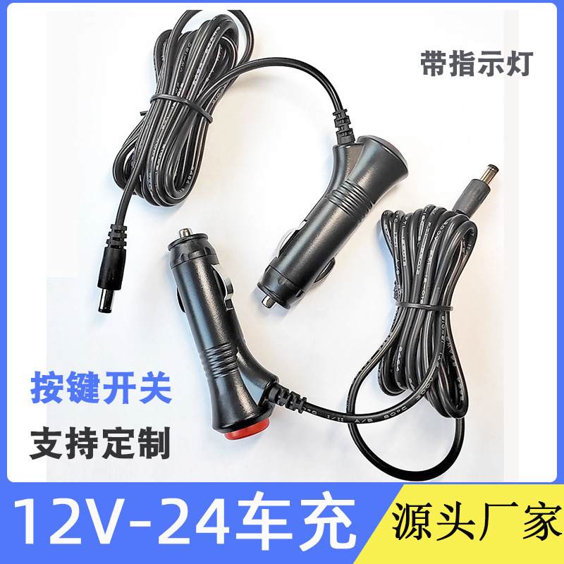 12V车充线带开关电子狗车载空气净化器车载冰箱氛围灯车充直通线