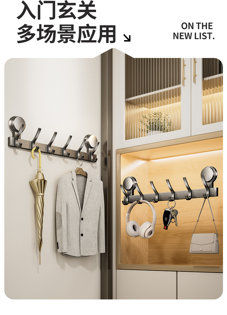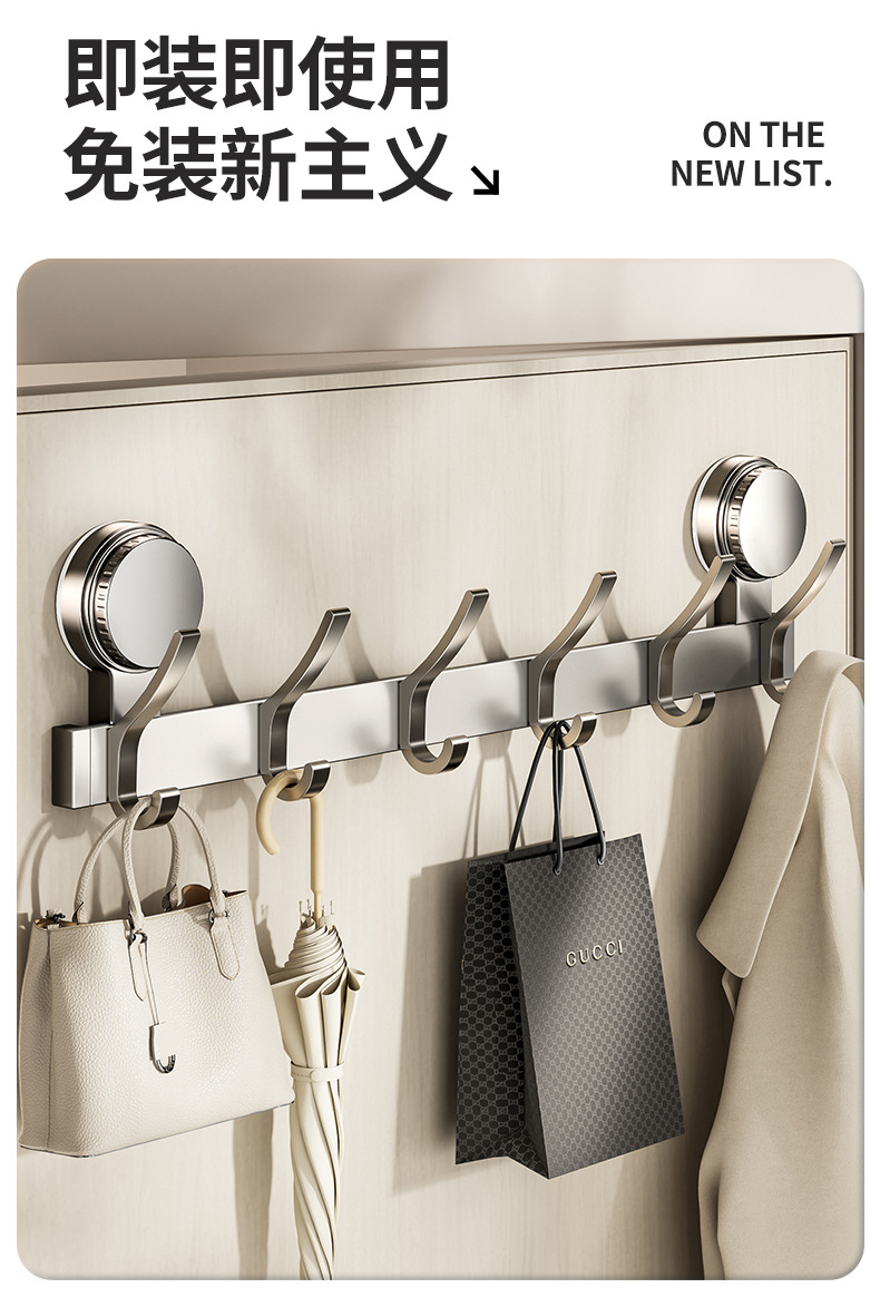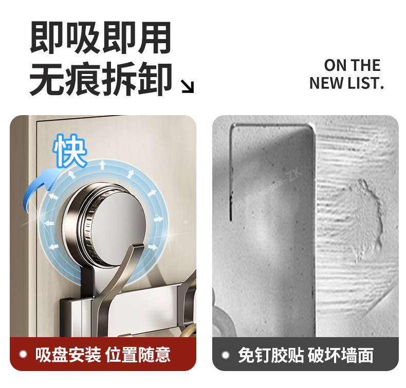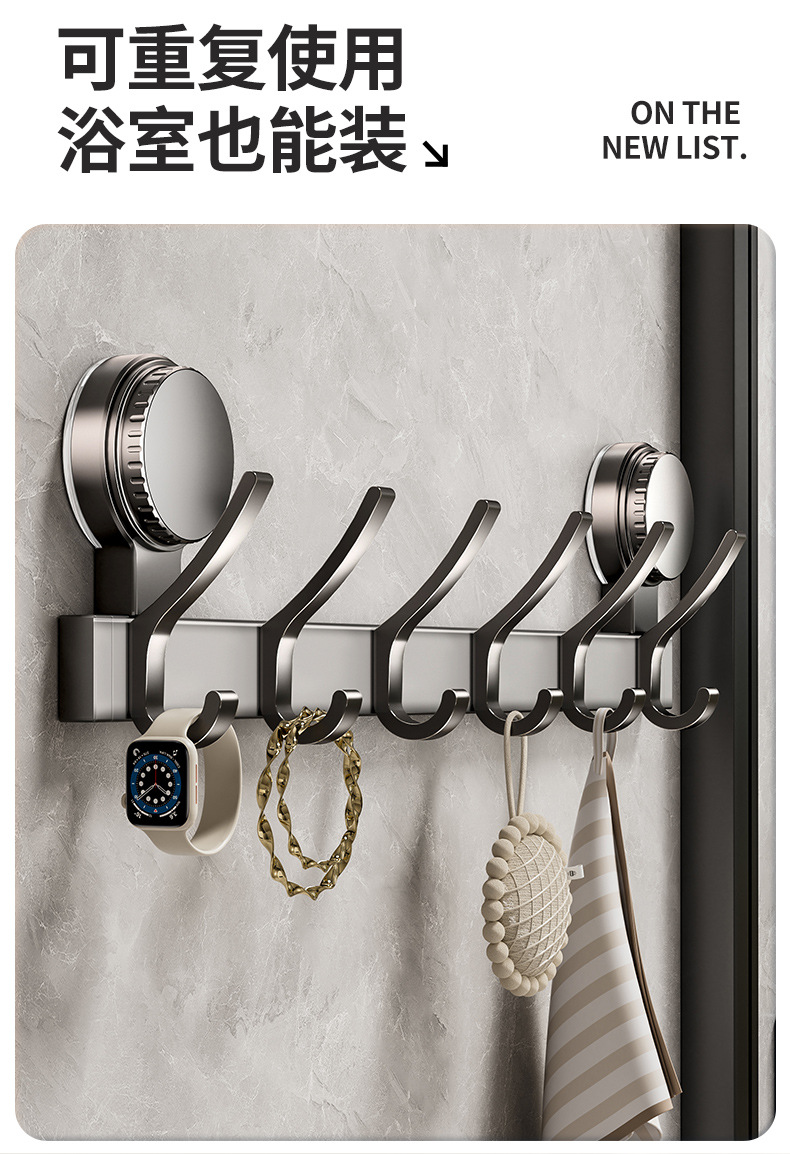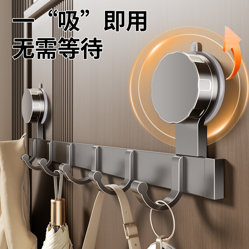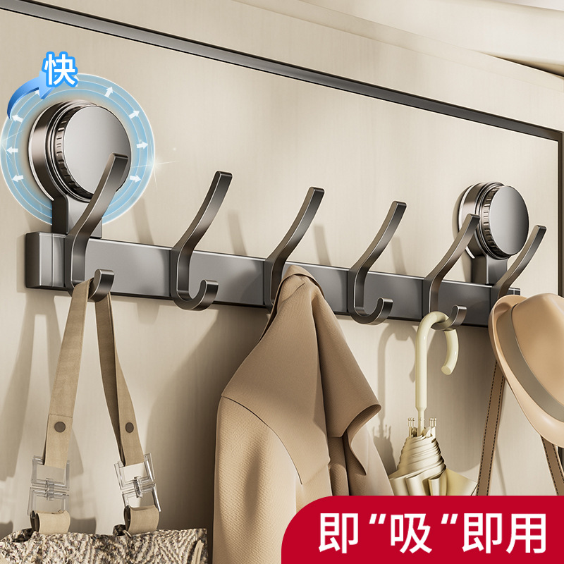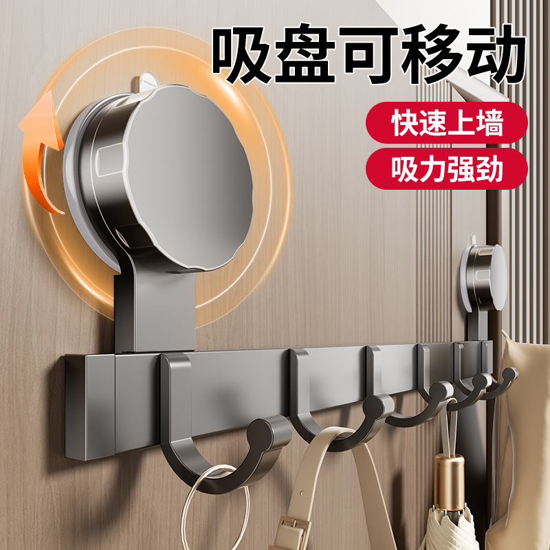 浴室免打孔衣帽挂钩多功能卫生间玄关墙上壁挂收纳架吸盘门后粘钩
